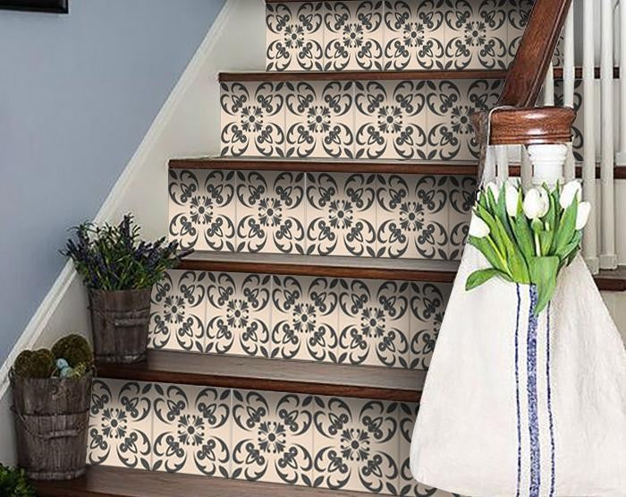 Create a unique look with these 4" x 4" Charcoal Orchid Peel and Stick Removable Tile stickers. These fabulous peel and stick tiles will add sophisticated flair and design to your kitchen backsplash, fireplace mantel, stair treads, half wall, bathroom or nook. These 4" square tile stickers are an easy, no mess solution to complete a personalized and colorful room makeover. Easy to apply on any clean dry flat surface, and easy to remove. Multi use and multi-room appeal make this design option is perfect for renters, landlords, college students and homeowners alike. Peel and stick tile decals make it easy to turn your space into a home. Removable without damage to surfaces. One kit contains 24 stickers. Kit includes a single repeating design.