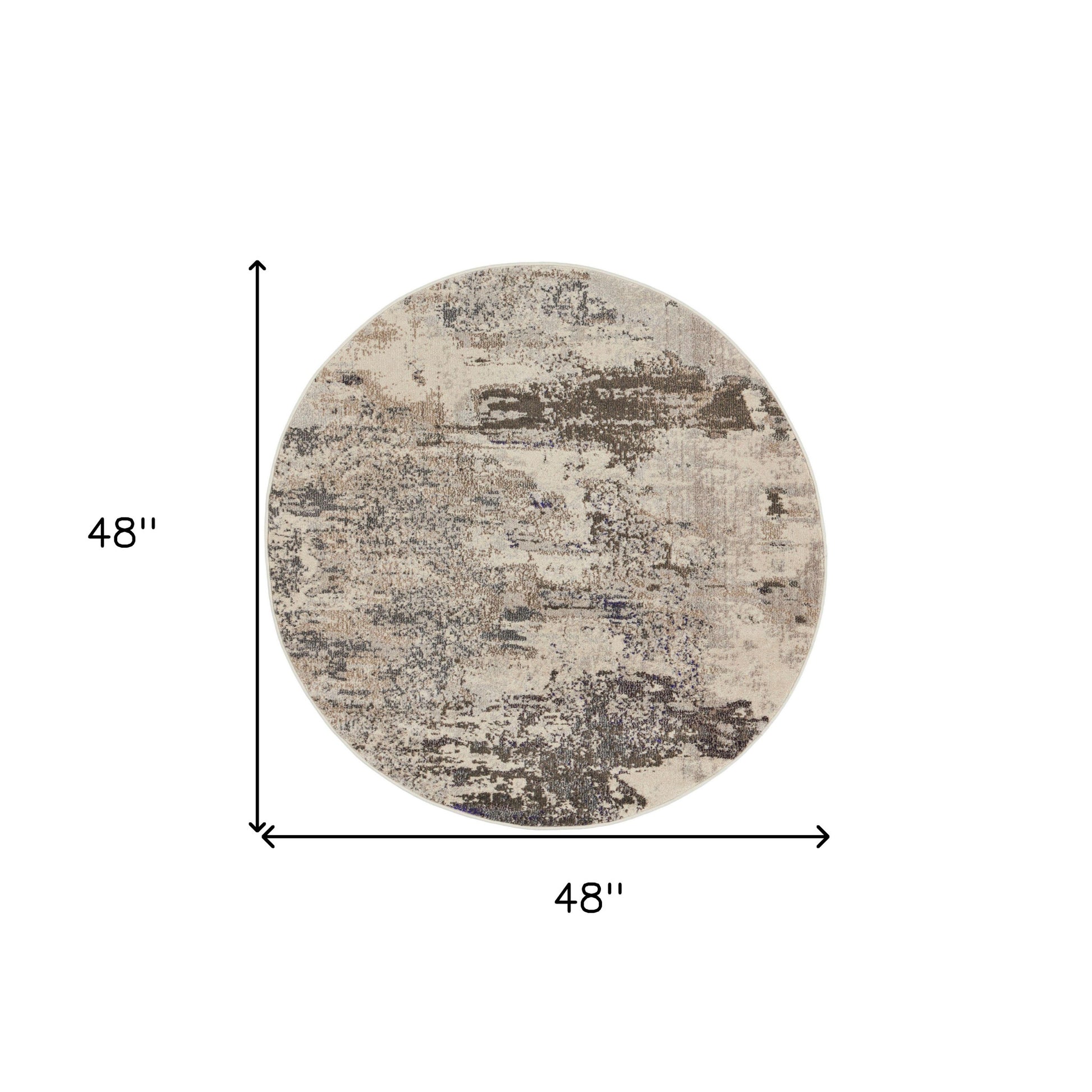 4' X 4' Ivory And Grey Round Abstract Power Loom Non Skid Area Rug