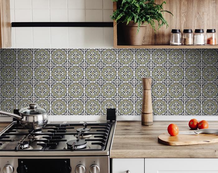 The possibilities are endless with these 4" x 4" Vintage Sage Medallion Peel and Stick Removable Tile stickers. These fabulous peel and stick tiles will add sophisticated flair and design to your kitchen backsplash, fireplace mantel, stair treads, half wall, bathroom or nook. These 4" square tile stickers are an easy, no mess solution to complete a personalized and colorful room makeover. Easy to apply on any clean dry flat surface, and easy to remove. Multi use and multi-room appeal make this design option is perfect for renters, landlords, college students and homeowners alike. Peel and stick tile decals make it easy to turn your space into a home. Removable without damage to surfaces. One kit contains 24 stickers. Kit includes a single repeating design.