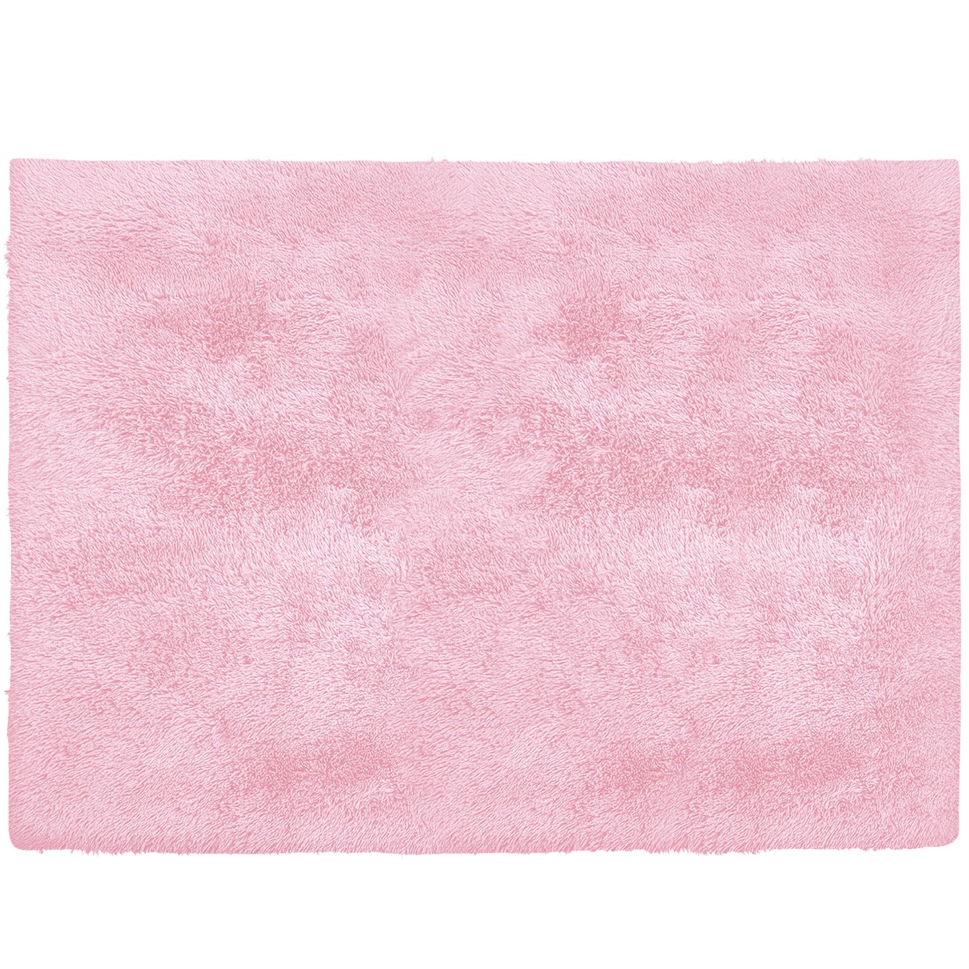 Add great coloration and comfortable texture to your space with this 4' x 5' pink shag power loom area rug. This rectangle shaped rug flaunts a pink color that will be a great way to accent your space. Solid colors are versatile and will blend with any existing decor style. This superior Turkish rug represents the highest quality and is built to last. The retro shag construction of this luxurious rug will provide a soft and comfortable barrier to color tile and hardwood floors. Area Rugs help to give warmth and sense of home to your space. 1.6" H x 48" W x 63" D