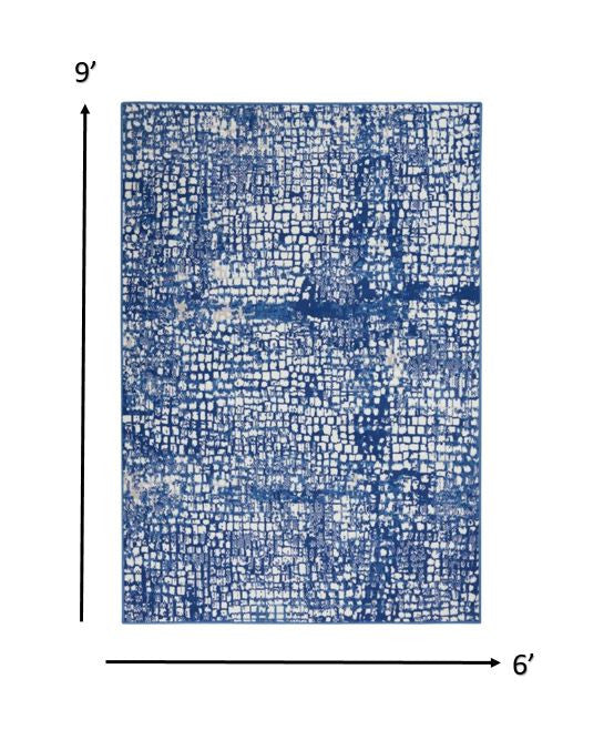 5' X 7' Blue And Ivory Abstract Dhurrie Area Rug