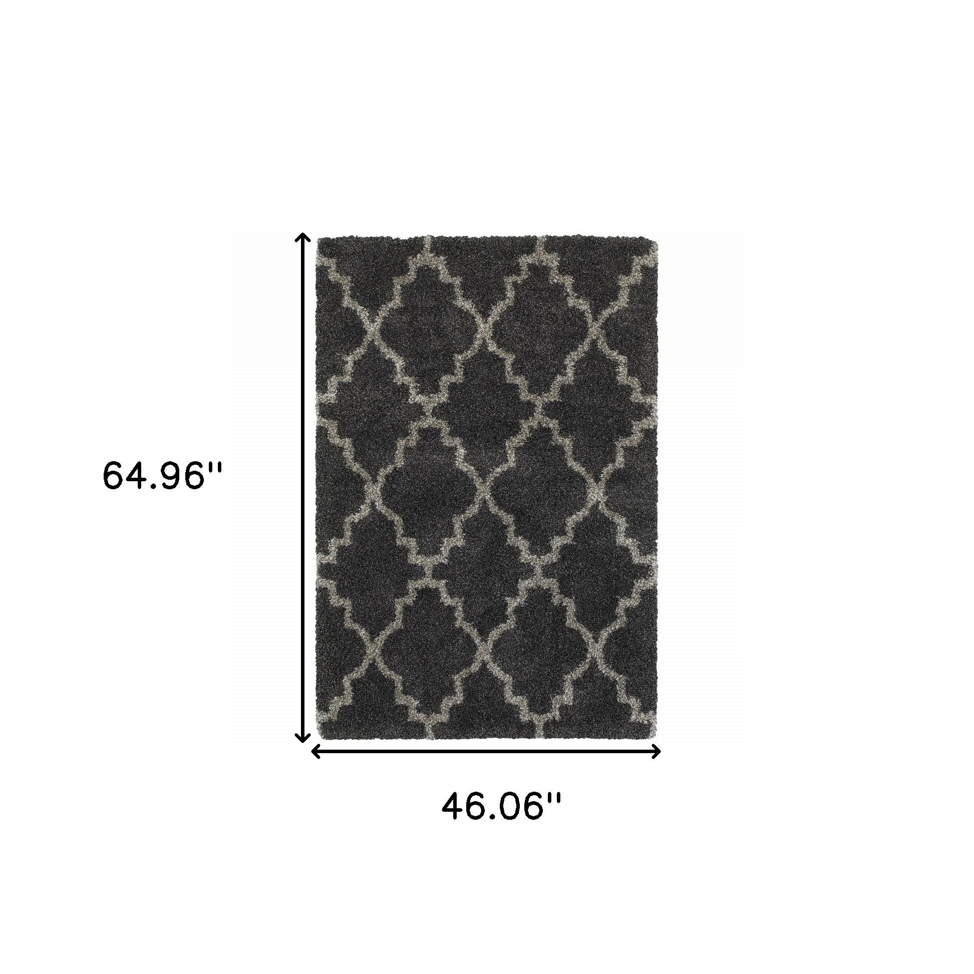 4' X 6' Charcoal And Grey Geometric Shag Power Loom Stain Resistant Area Rug