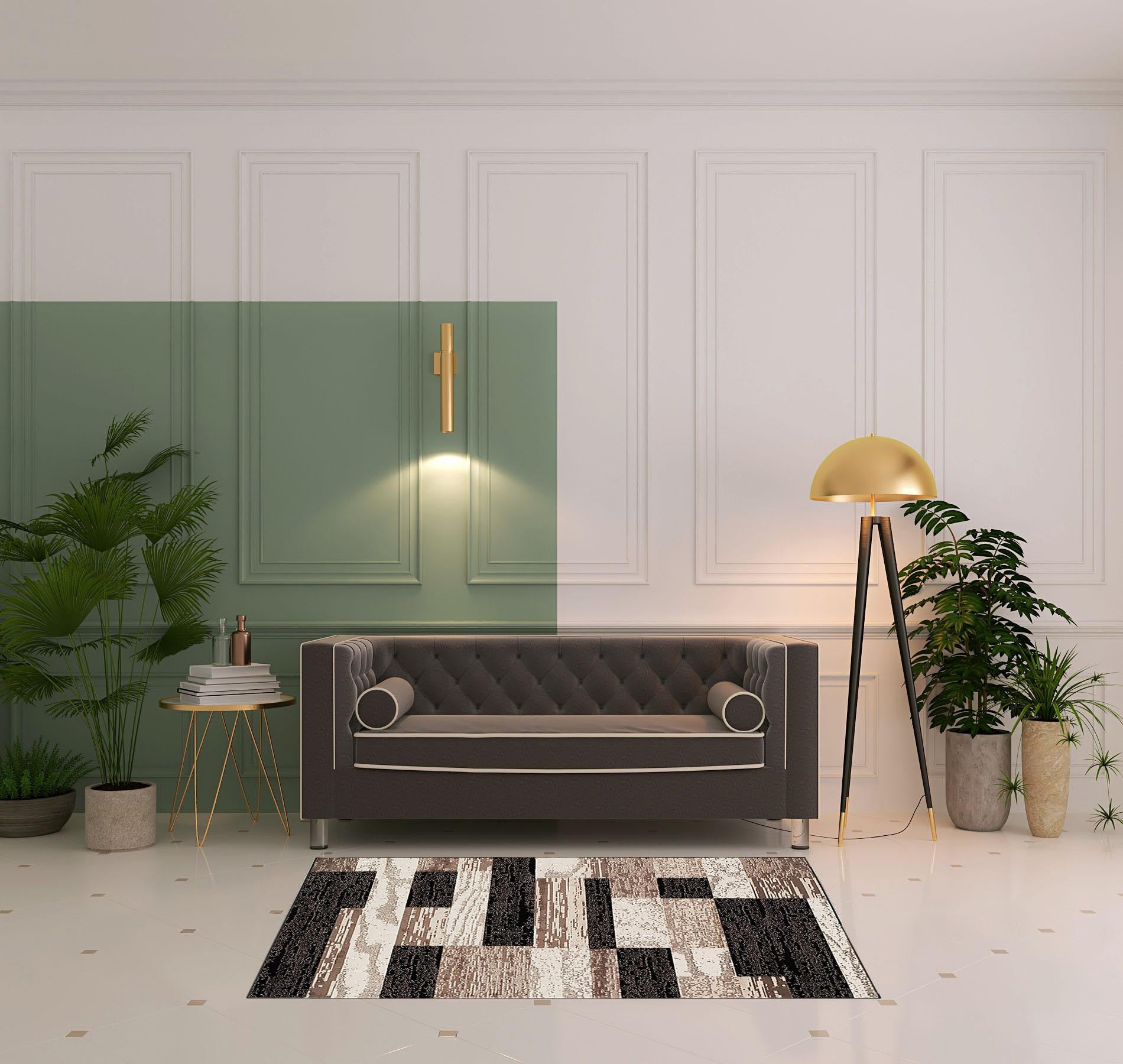 4' X 6' Chocolate Patchwork Power Loom Stain Resistant Area Rug