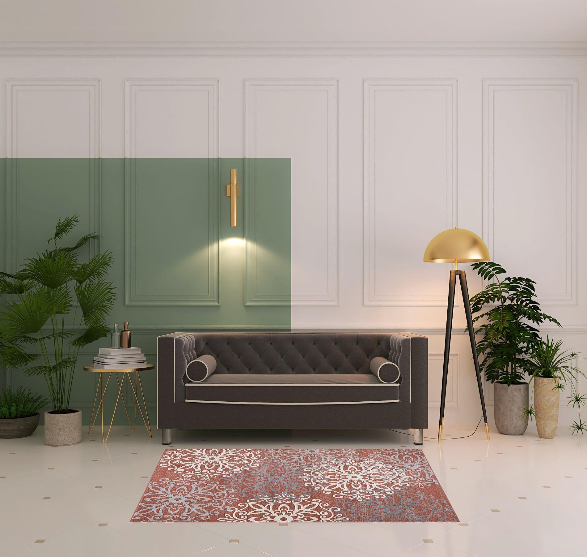 Set an inviting tone in your space with this 4' x 6' ginger and gray medallion power loom stain resistant area rug. This rectangle shaped rug features a medallion design in ginger and gray to give it visual interest. A classic shape marries with good looking design for your space Made in Turkey, this rug offers high quality combined with good looking designer sensibilities. Ideal for spaces with kids and pets, this rug is stain resistant to help repel stains and spilled liquids. Place this area rug against a hardwood or tile floor and it will enliven your living space with style and sophistication. 0.31" H x 48" W x 72" D