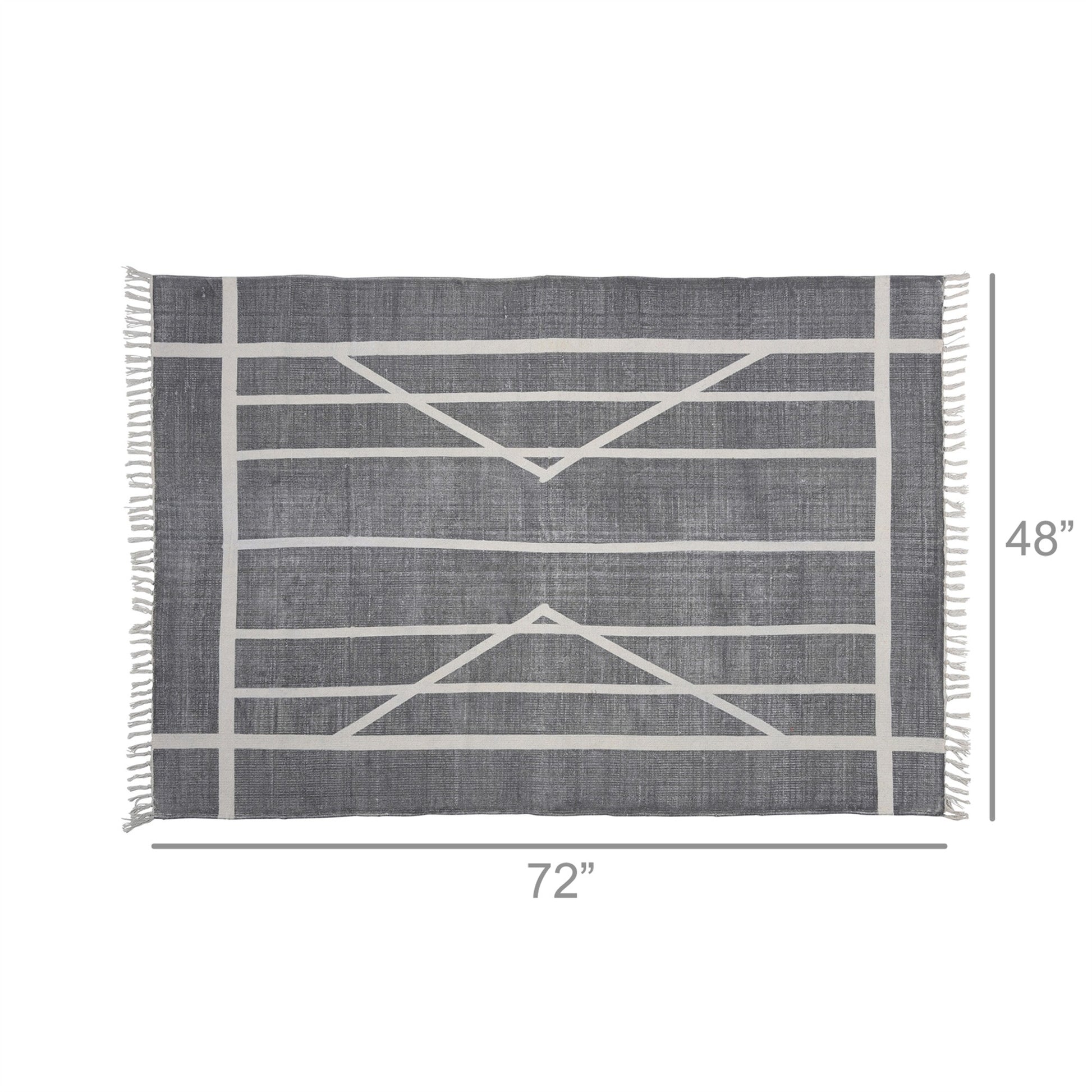 Set an inviting tone in your space with this 4' x 6' gray dhurrie area rug. The coloring of this rug adds a delightfully neutral tone to your home and will easily match with most any decor. Place this area rug against a hardwood or tile floor and it will enliven your living space with style and sophistication. 0.1" H x 72" W x 48" D