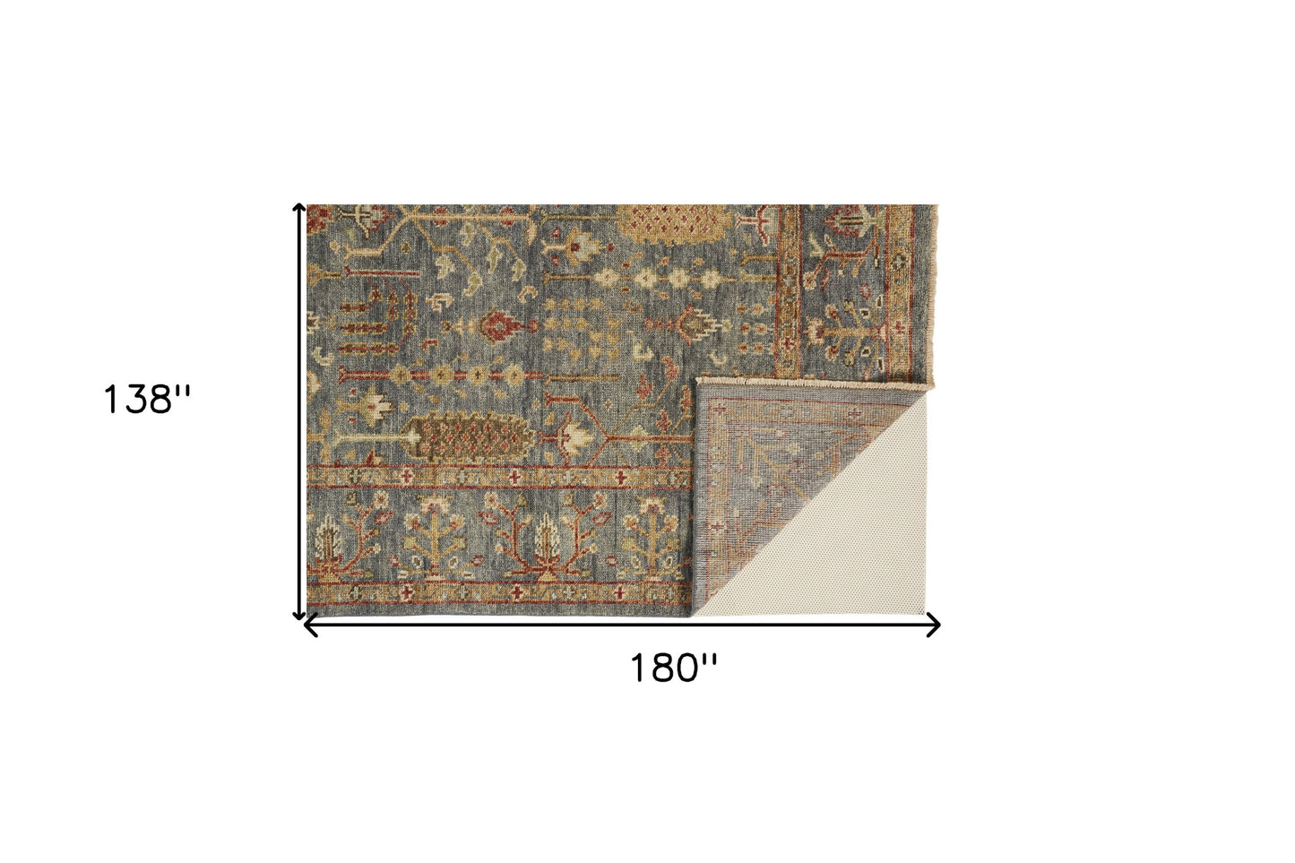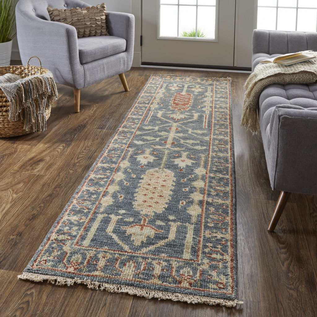 4' X 6' Gray Gold And Red Wool Floral Hand Knotted Stain Resistant Area Rug With Fringe
