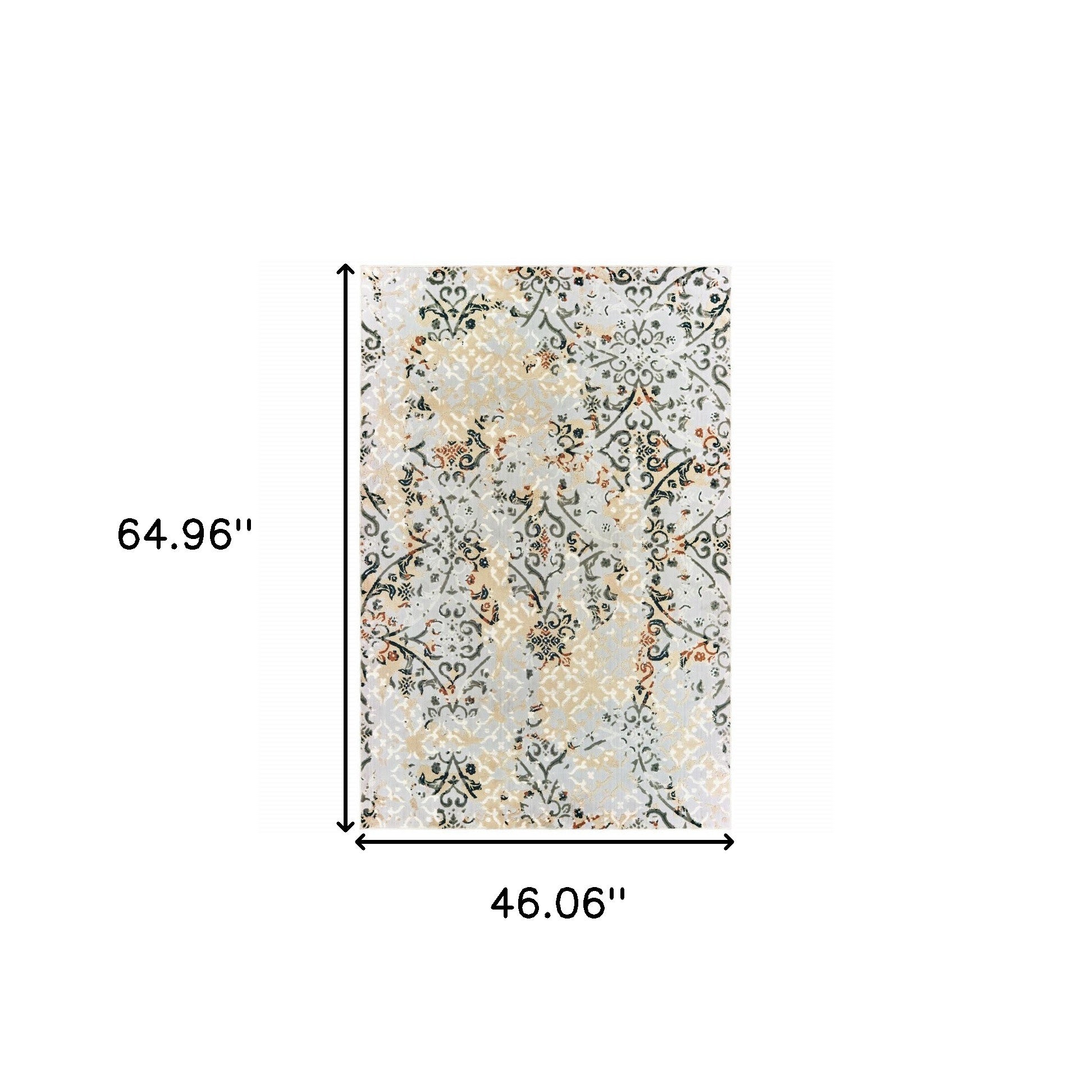 4' X 6' Grey And Gold Abstract Power Loom Stain Resistant Area Rug
