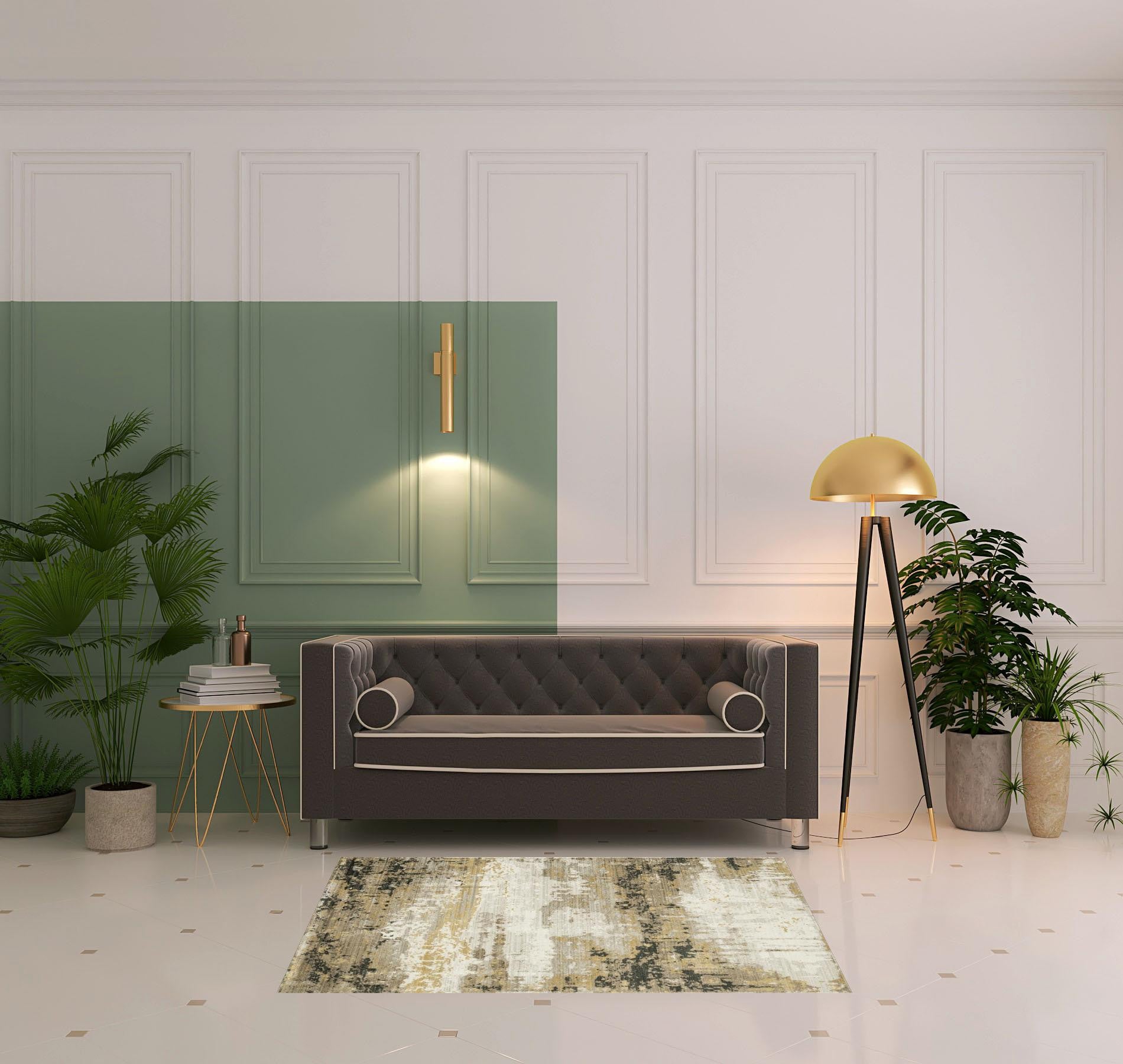Add great coloration and comfortable texture to your space with this 4' x 6' grey gold black charcoal and beige abstract power loom stain resistant area rug with fringe. This rectangle shaped rug features a abstract design in grey gold black charcoal and beige to give it visual interest. A classic shape marries with good looking design for your space Ideal for spaces with kids and pets, this rug is stain resistant to help repel stains and spilled liquids. Tassel ends bring a timeless and fashionable look to your interior. Area Rugs help to give warmth and sense of home to your space. 0.31" H x 46.06" W x 64.96" D