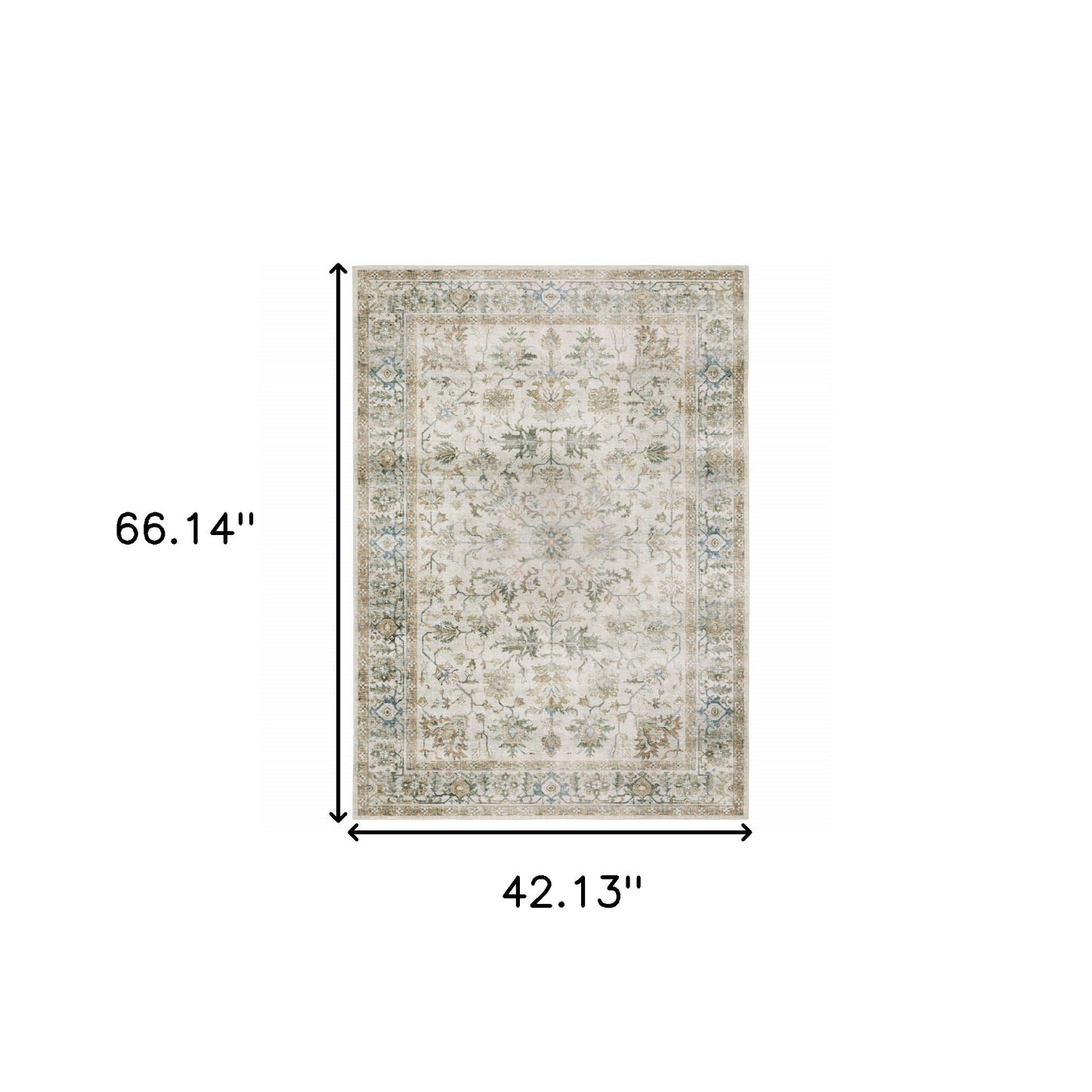 4' X 6' Grey Orange Blue Gold Green And Rust Oriental Printed Stain Resistant Non Skid Area Rug