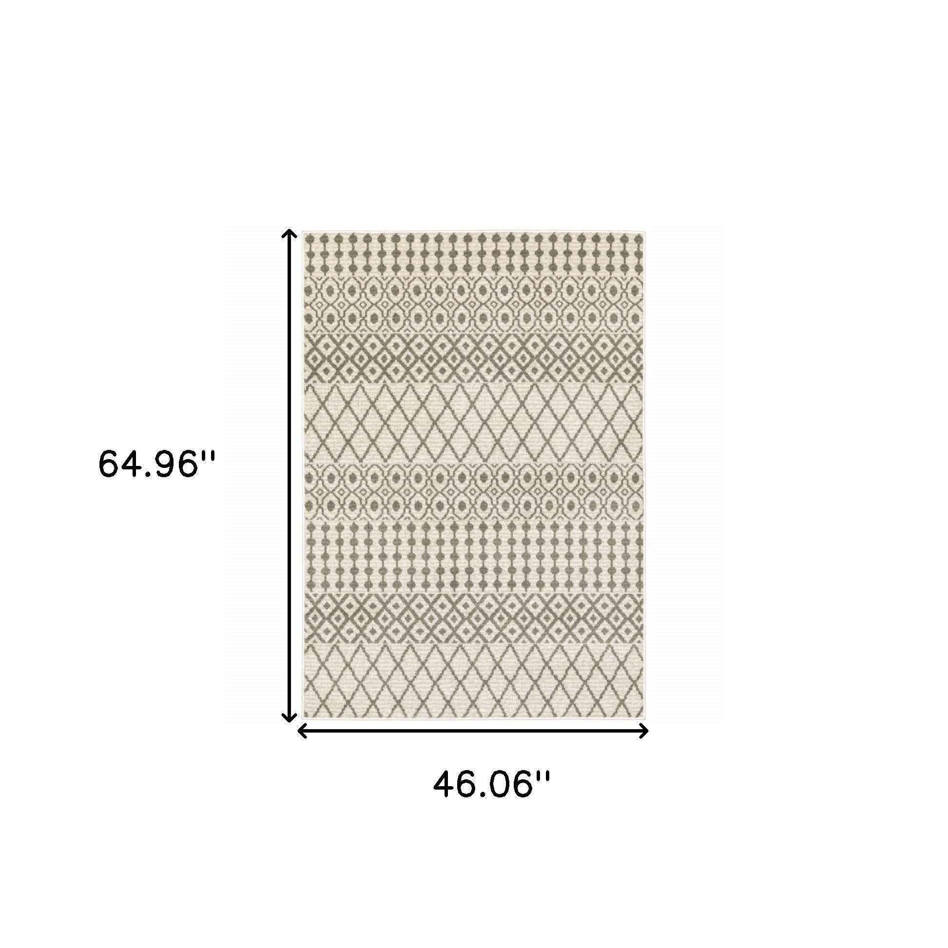 4' X 6' Ivory And Grey Geometric Power Loom Stain Resistant Area Rug