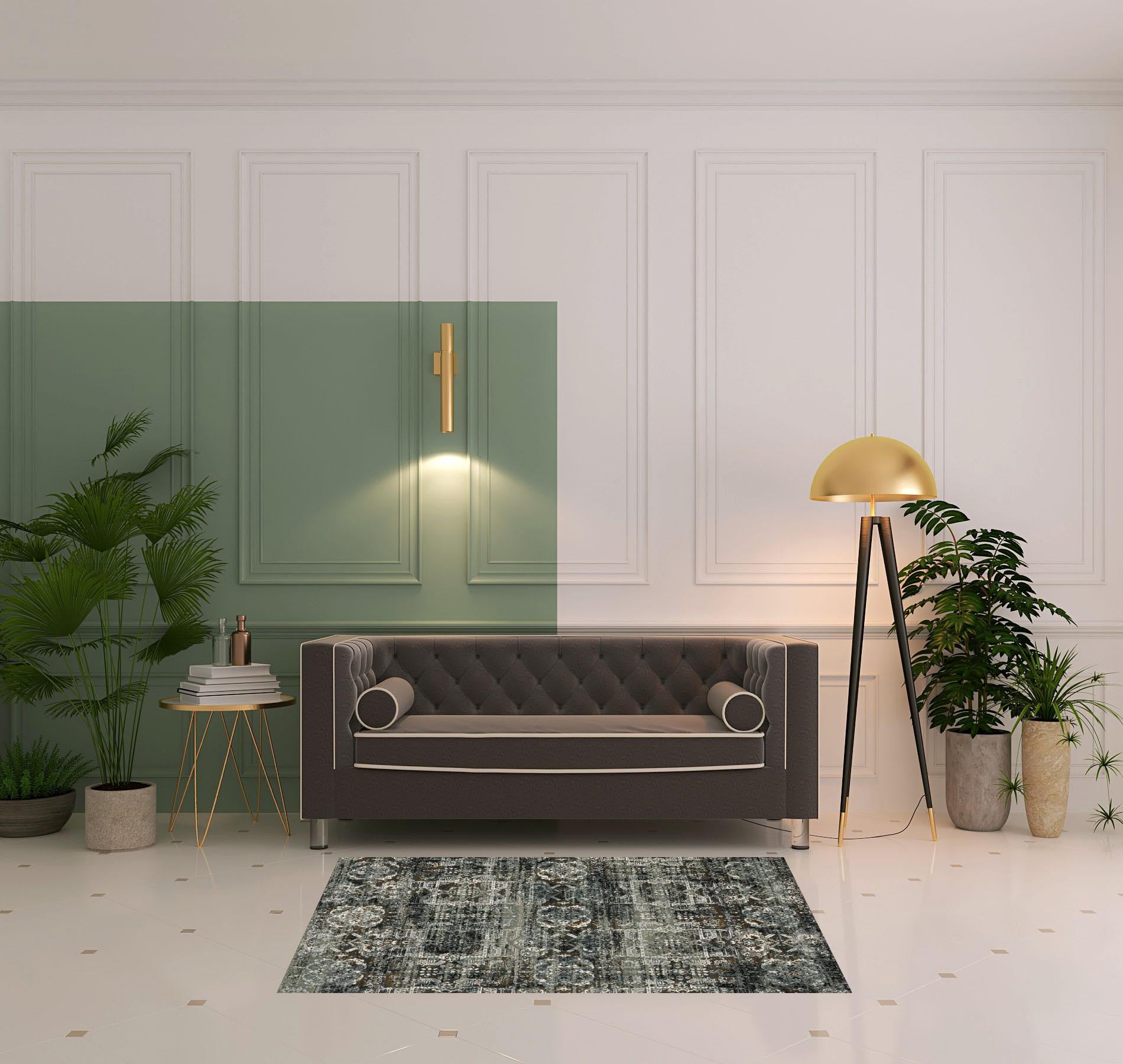 Set an inviting tone in your space with this 4' x 6' ivory charcoal grey blue rust gold and brown oriental power loom stain resistant area rug. This rectangle shaped rug features a oriental design in ivory charcoal grey blue rust gold and brown to give it visual interest. A classic shape marries with good looking design for your space Ideal for spaces with kids and pets, this rug is stain resistant to help repel stains and spilled liquids. Place this area rug against a hardwood or tile floor and it will enliven your living space with style and sophistication. 1" H x 46.06" W x 64.96" D