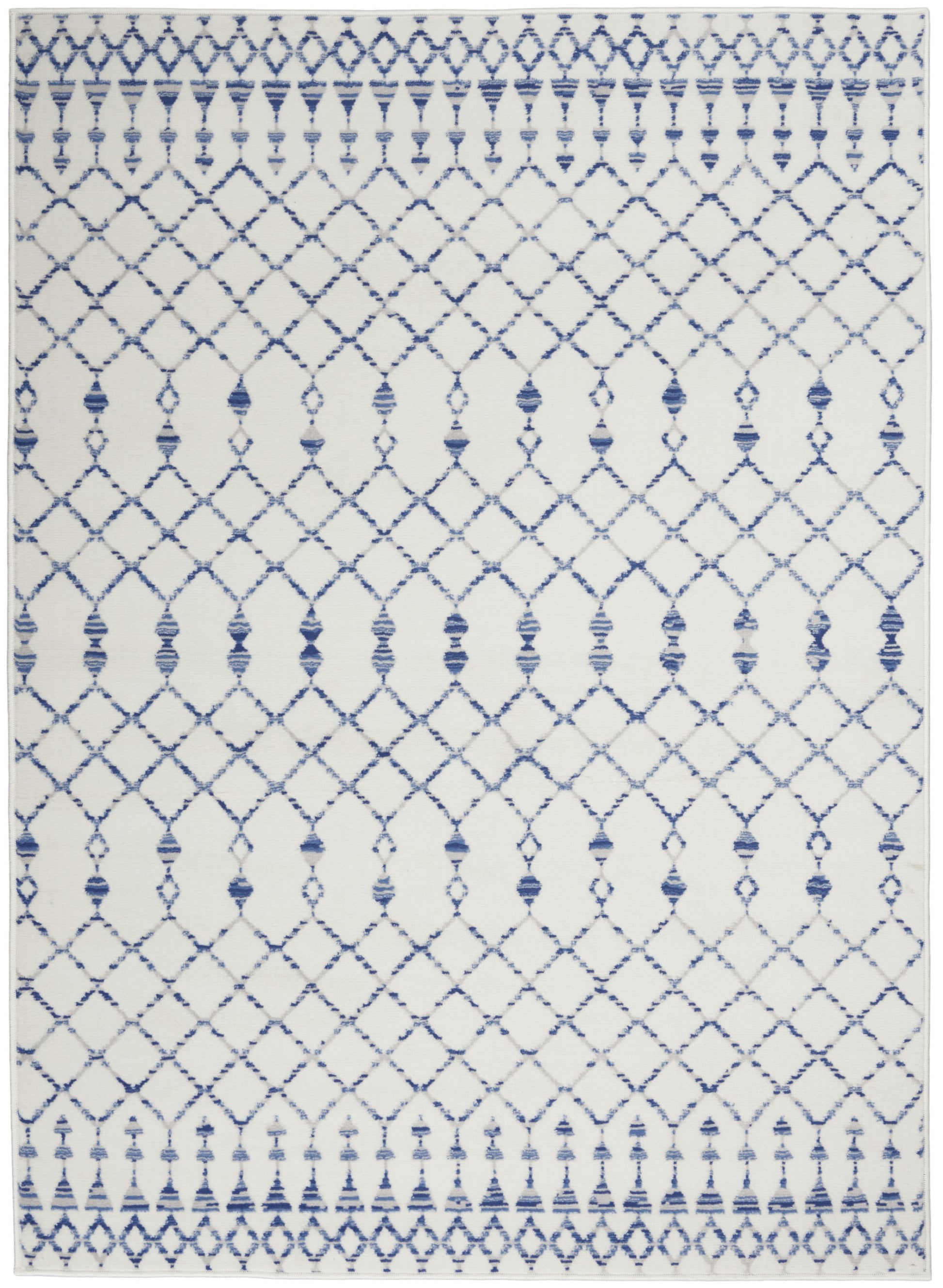 Add some artistry to your room with this 5’ x 7’ ivory and blue berber pattern area rug. This rectangle shaped rug features a geometric design in ivory to give it visual interest. A classic shape marries with good looking design for your space The coloring of this rug adds a delightfully neutral tone to your home and will easily match with most any decor. Area Rugs help to give warmth and sense of home to your space. 1" H x 60" W x 84" D