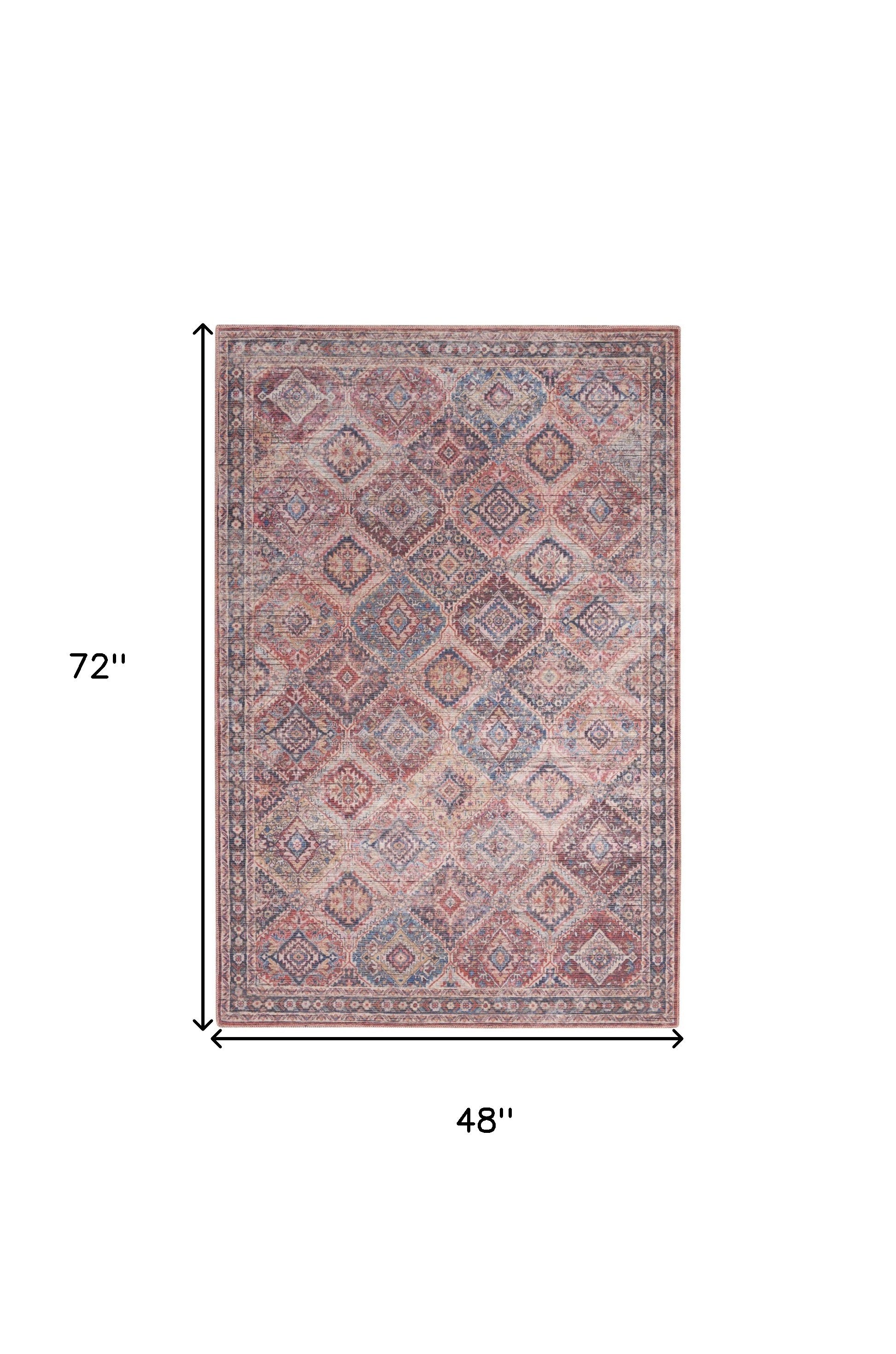 4' X 6' Multicolor Oriental Power Loom Distressed Washable Area Rug