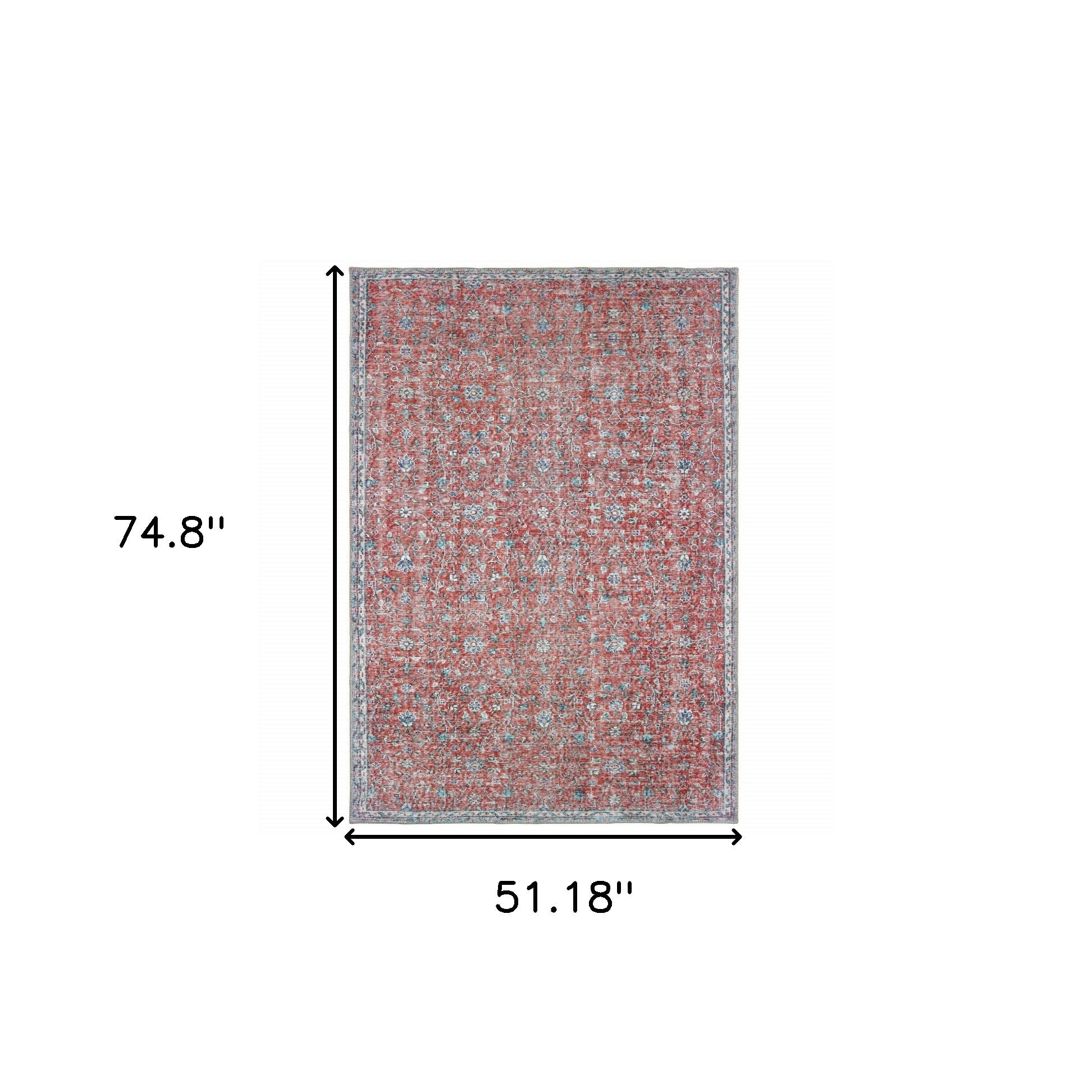 4' X 6' Red And Blue Oriental Power Loom Stain Resistant Area Rug
