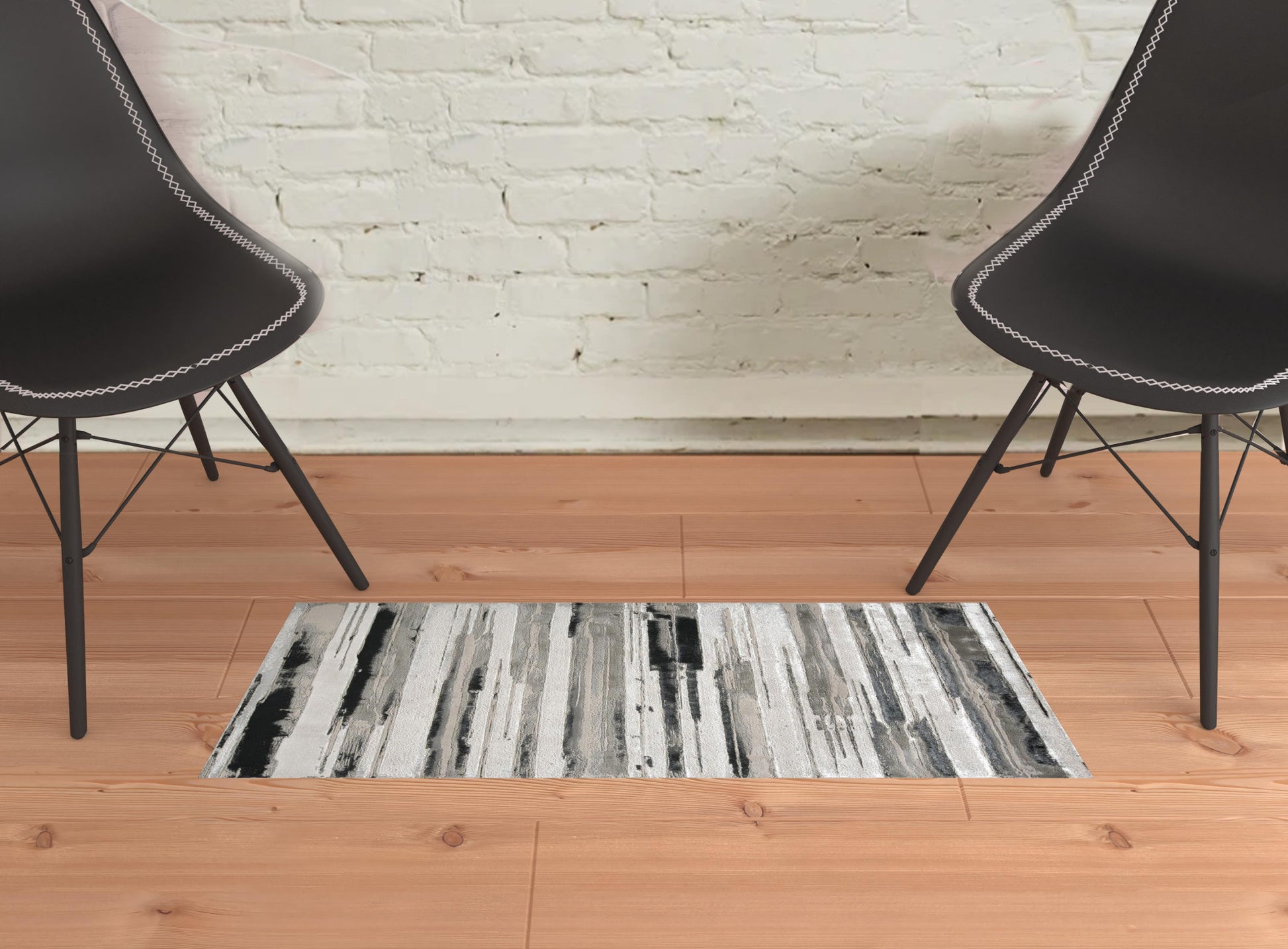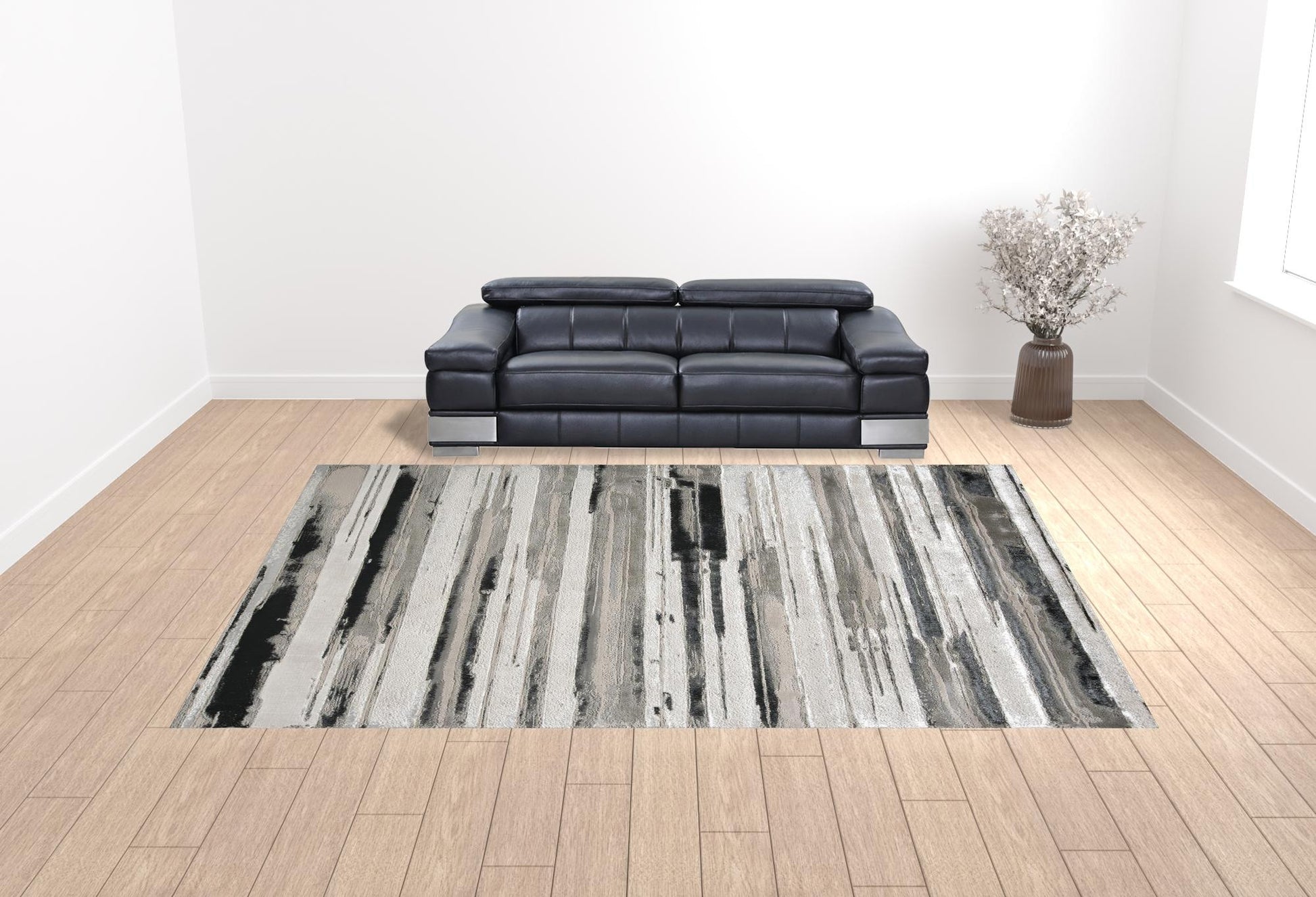 4' X 6' Silver Gray And Black Abstract Area Rug