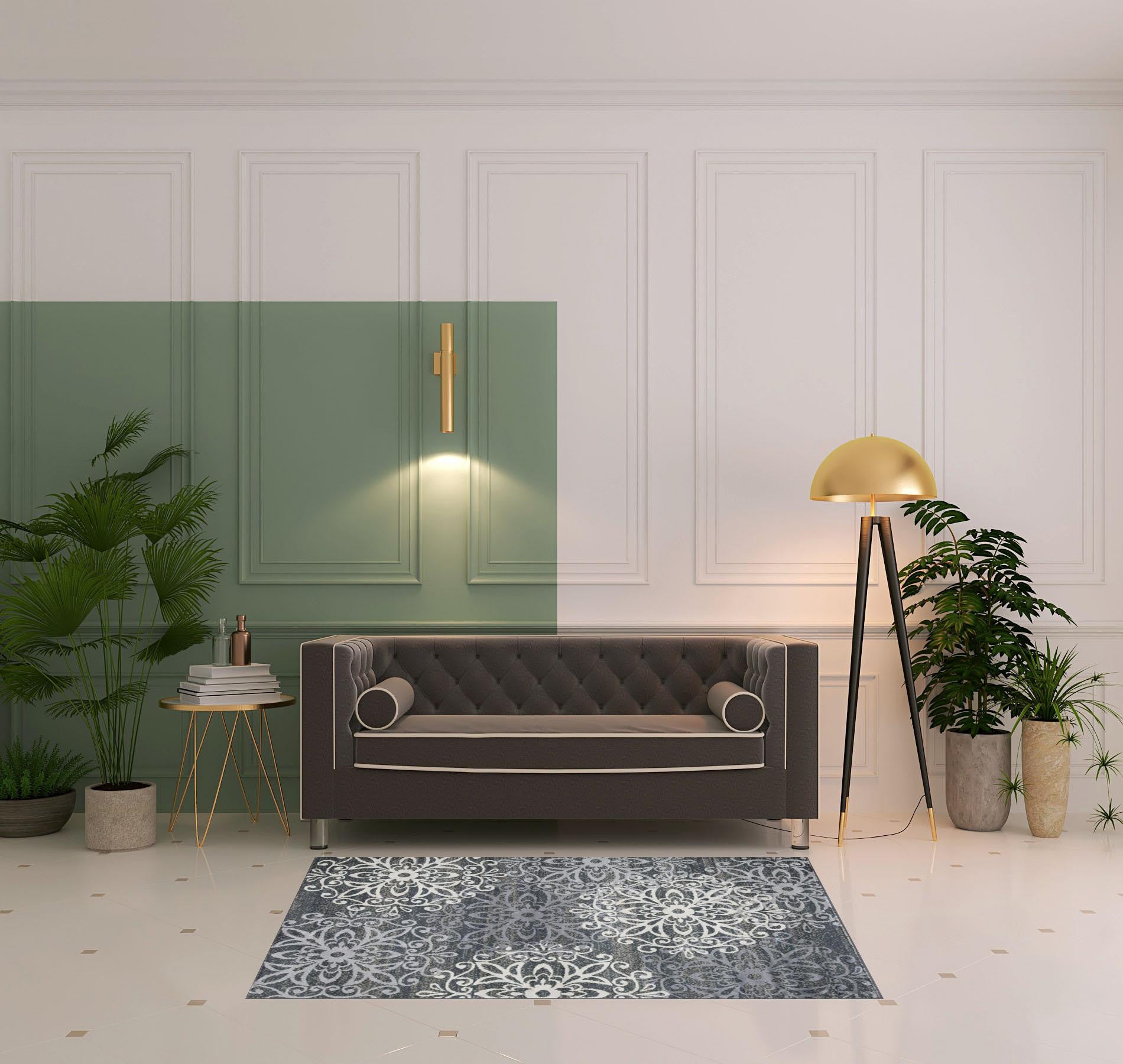 Set an inviting tone in your space with this 4' x 6' slate medallion power loom area rug. This rectangle shaped rug features a medallion design in slate to give it visual interest. A classic shape marries with good looking design for your space Made in Turkey, this rug offers high quality combined with good looking designer sensibilities. Ideal for spaces with kids and pets, this rug is stain resistant to help repel stains and spilled liquids. Place this area rug against a hardwood or tile floor and it will enliven your living space with style and sophistication. 0.31" H x 48" W x 72" D