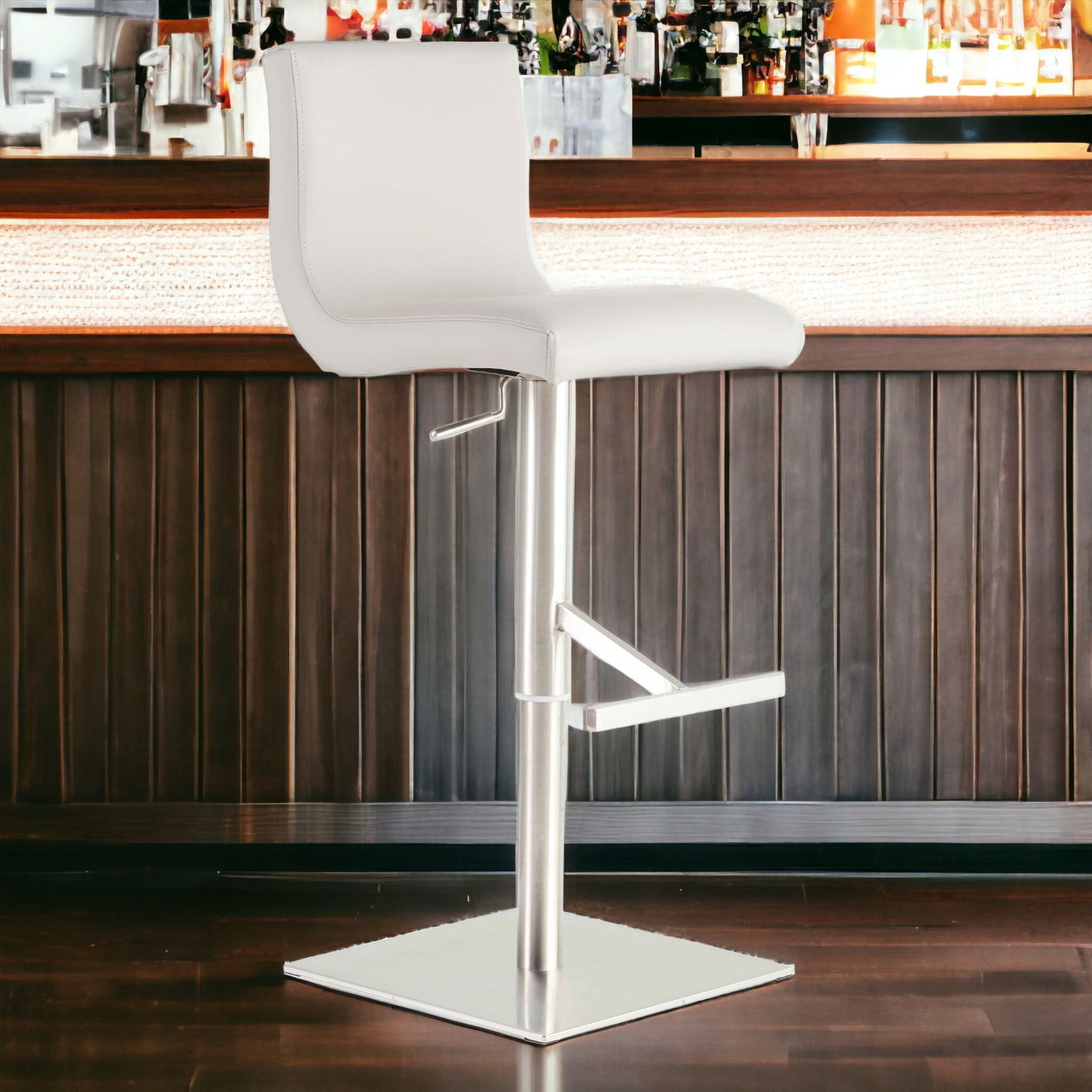 42" White And Silver Steel Swivel Low Back Bar Height Chair With Footrest