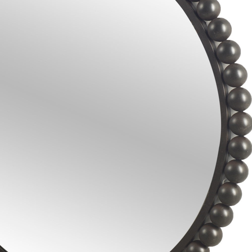Outstanding circular mirror with elegant bead detail around the frame. Colored in black, the metal frame of this mirror provides a beautiful contrast with surrounding walls. The mirror scatters light in an adorable manner. You deserve to have it as part of your home collection. Dimensions: 43".