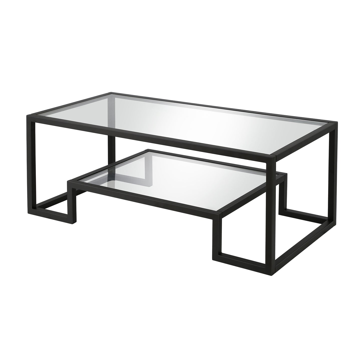 Add handsome, fashionable design to your living space with this 45-inch black glass and steel coffee table with shelf. This table features an updated monotone color scheme with black as the main color on both the glass top and the steel base. Help to keep your space organized with the included single shelf. This rectangular table is an classic yet updated way to accent your room. If you're looking for something that can fit into a living area, bedroom, or office, this coffee table is for you. This coffee table is the sturdy, reliable and stylish answer to your living room needs. 17-inch H x 45-inch W x 20-inch D