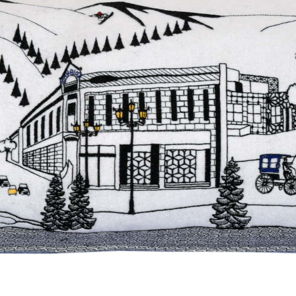 Showcase this famous city, with our Cream Color Aspen Daylight Skyline King Size Lumbar Decorative Pillow. The daylight view of Aspen from the Roaring Fork River is picture perfect. The gorgeous art features many famous landmarks and references for this destination city, rendering a modern whimsical way to bring this iconic cityscape to life. Made of a wool/nylon blend, this high quality stitched decorative pillow features black on white embroidered artwork mixed with pops of color that highlight important and recognizable icons from this popular Colorado city known for its snow sports, fine dining, and resorts. This pillow makes a great gift, decorative accent and conversation piece. 4" x 45" x 14"