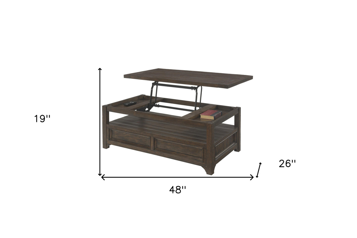 48" Dark Mocha Solid Wood Rectangular Lift Top Storage Coffee Table