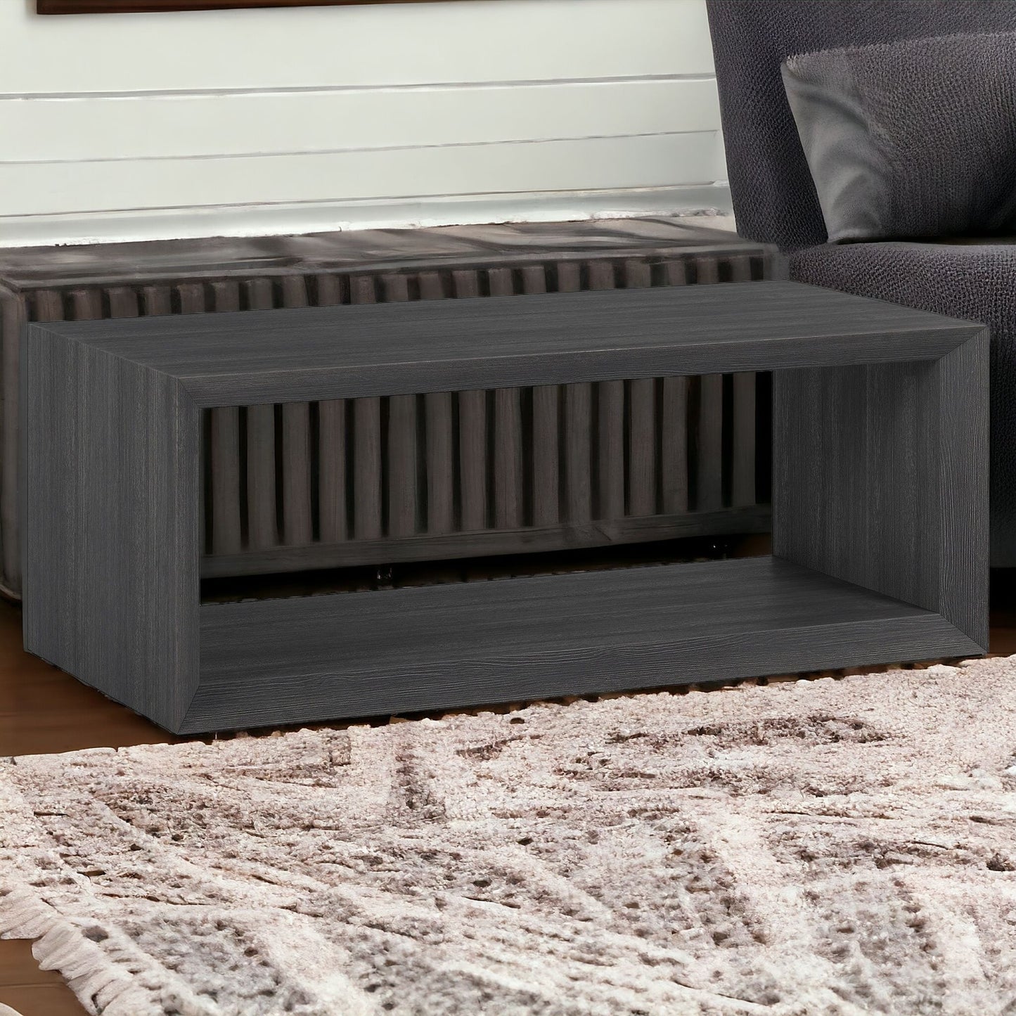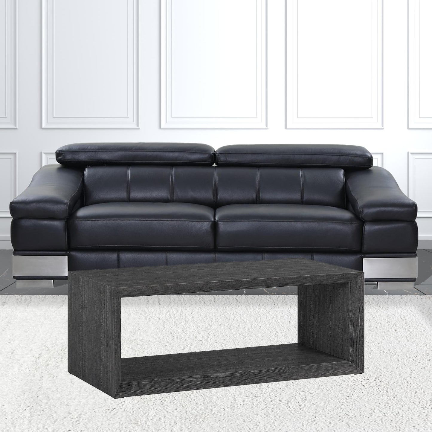 This good looking 48-inch gray coffee table with shelf is not only practical, but good looking and built to last. This table is made from manufactured wood in a gray color throughout the base and top. Includes a single shelf for handy storage or display space. This rectangular table is an classic yet updated way to accent your room. It has a fresh design that will definitely breathe some fresh air into your interior. This coffee table is the sturdy, reliable and stylish answer to your living room needs. 18-inch H x 48-inch W x 23.38-inch D