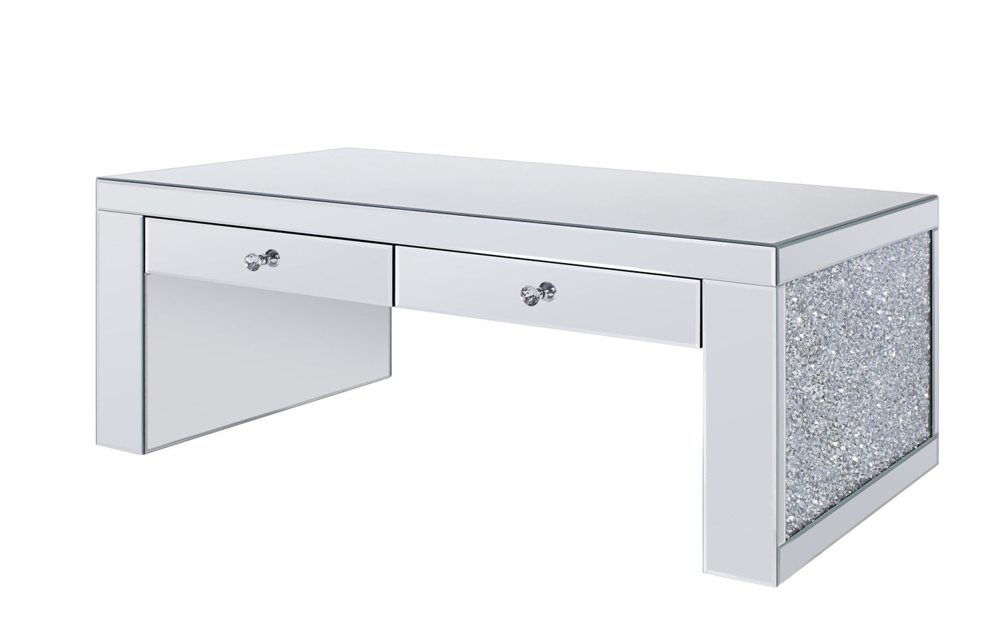48" Silver Glass Mirrored Coffee Table With Two Drawers