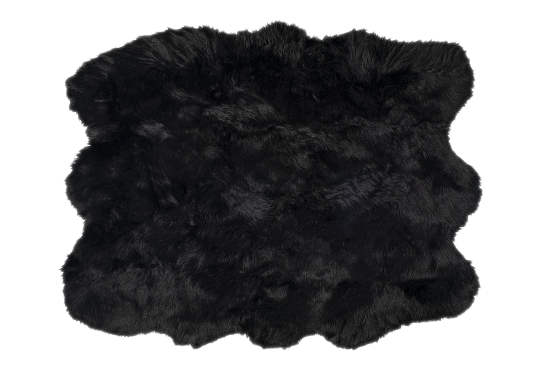 5' X 6' Black Faux Fur Washable Non Skid Area Rug