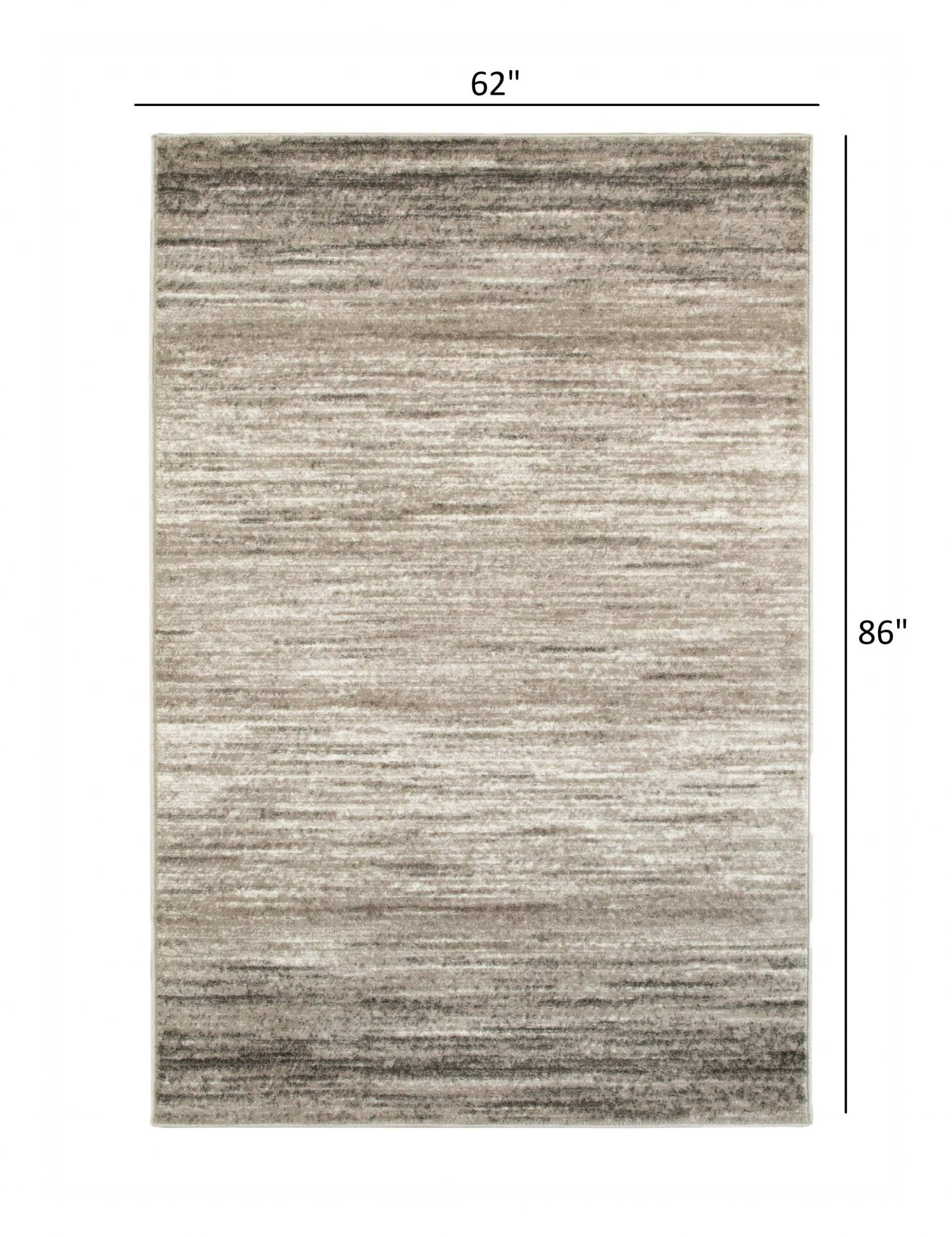 Simple yet compelling to be an attractive accent on the floor, this Beige Abstract Striations Area Rug exhibits a neutral color palette to merge together with a variety of interior settings. The sophisticated shades of beige transition from dark to light tones, creating abstract striations throughout the surface for visual interest. You won’t have to worry about fading or staining as this rug is made in Turkey with olefin fibers which ensure fade and stain resistance by wicking away moisture to retain the immaculate look. Made to experience a soft and velvety feel under the feet, this rug is constructed in a low pile that adds to the surface texture and makes it easy to clean. Minimalist in design and delicate in colors, this versatile area rug will a sense of style and modern elegance to your living space. 62” x 86” x 0.4”