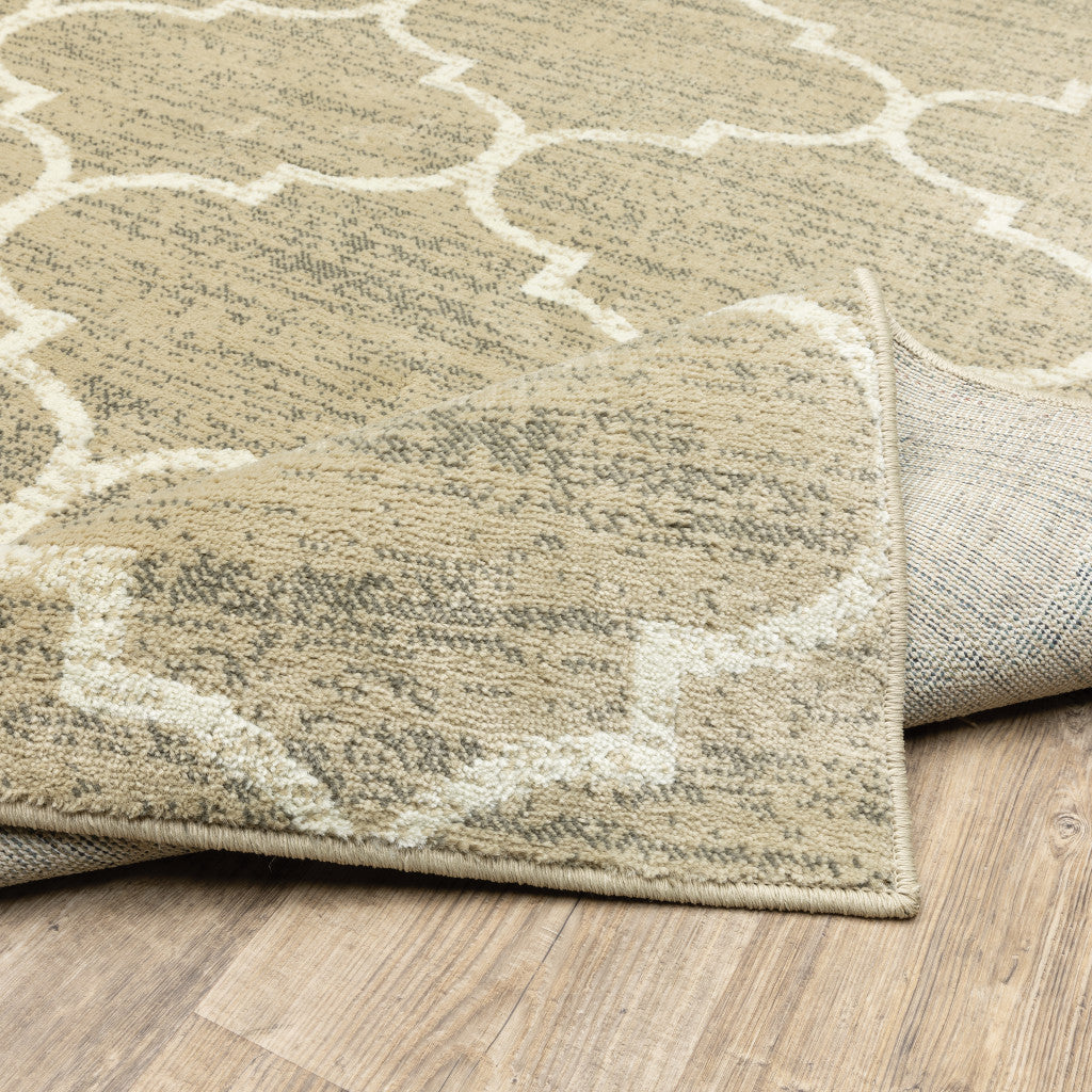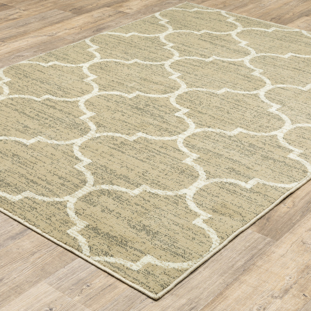 Add some artistry to your room with this 5' x 7' beige and ivory geometric power loom stain resistant area rug. This rectangle shaped rug features a geometric design in beige and ivory to give it visual interest. A classic shape marries with good looking design for your space Ideal for spaces with kids and pets, this rug is stain resistant to help repel stains and spilled liquids. Area Rugs help to give warmth and sense of home to your space. 0.31" H x 62.99" W x 86.61" D