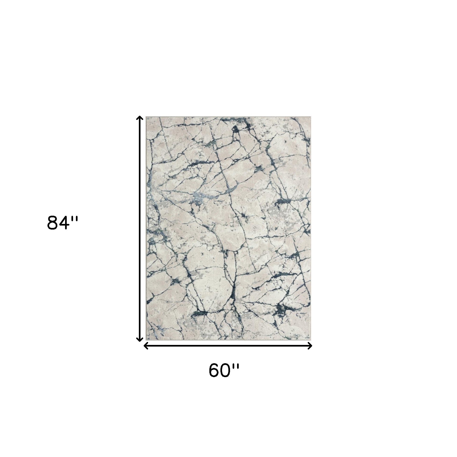 5' X 7' Blue And Gray Abstract Stain Resistant Area Rug