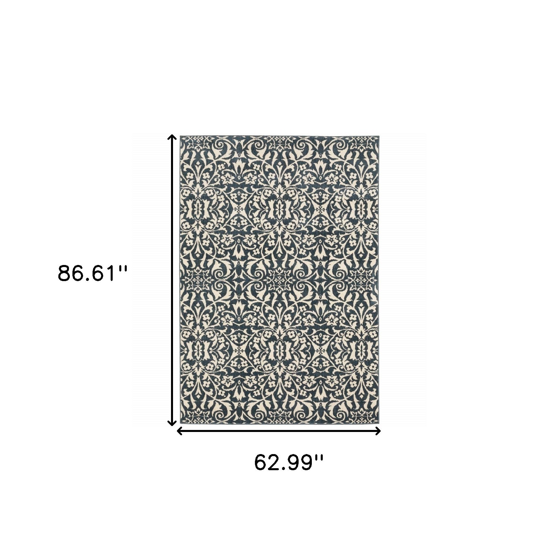 Set an inviting tone in your space with this 5' x 7' blue and ivory floral power loom stain resistant area rug. This rectangle shaped rug features a floral design in blue and ivory to give it visual interest. A classic shape marries with good looking design for your space Ideal for spaces with kids and pets, this rug is stain resistant to help repel stains and spilled liquids. Area Rugs help to give warmth and sense of home to your space. 0.35" H x 62.99" W x 86.61" D
