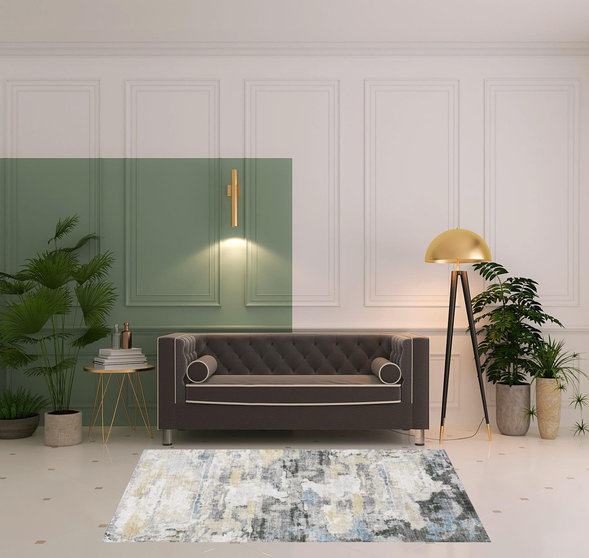 Add some artistry to your room with this 5' x 7' gray and ivory abstract printed stain resistant non skid area rug. This rectangle shaped rug features a abstract design in gray and ivory to give it visual interest. A classic shape marries with good looking design for your space Ideal for spaces with kids and pets, this rug is stain resistant to help repel stains and spilled liquids. Place this area rug against a hardwood or tile floor and it will enliven your living space with style and sophistication. 0.12" H x 59.84" W x 83.86" D