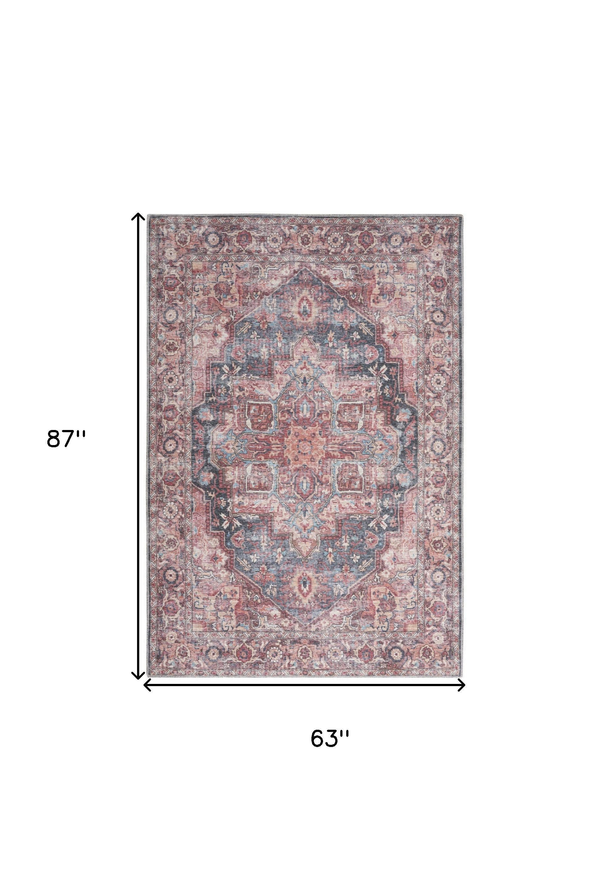 5' X 7' Multicolor Oriental Power Loom Distressed Washable Area Rug