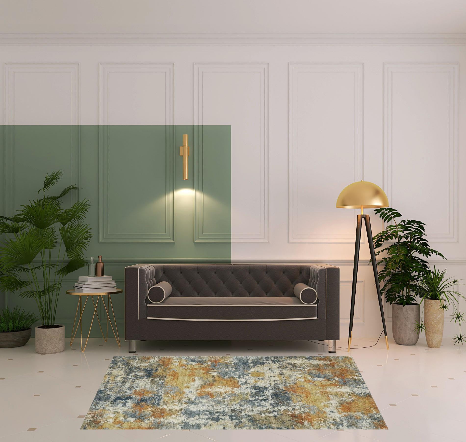 Add great coloration and comfortable texture to your space with this 5' x 7' teal blue orange gold grey tan brown and beige abstract printed stain resistant non skid area rug. This rectangle shaped rug features a abstract design in teal blue orange gold grey tan brown and beige to give it visual interest. A classic shape marries with good looking design for your space Ideal for spaces with kids and pets, this rug is stain resistant to help repel stains and spilled liquids. Area Rugs help to give warmth and sense of home to your space. 0.12" H x 59.84" W x 83.86" D