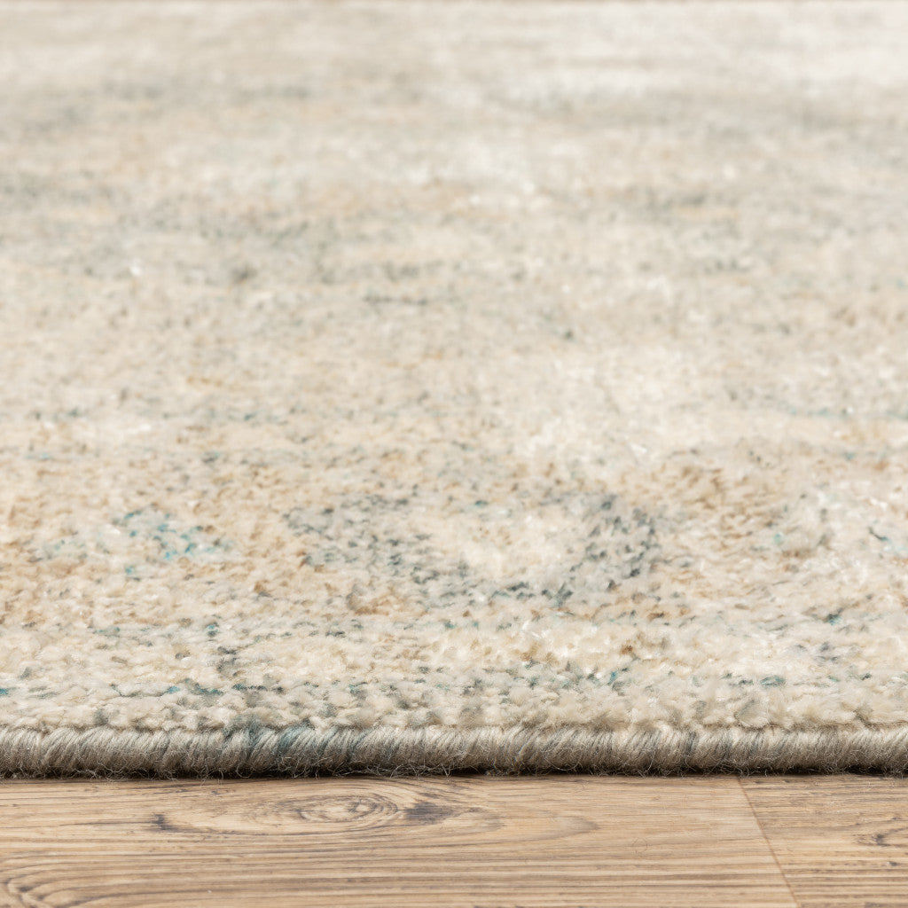 5' X 8' Beige And Grey Oriental Hand Loomed Stain Resistant Area Rug With Fringe