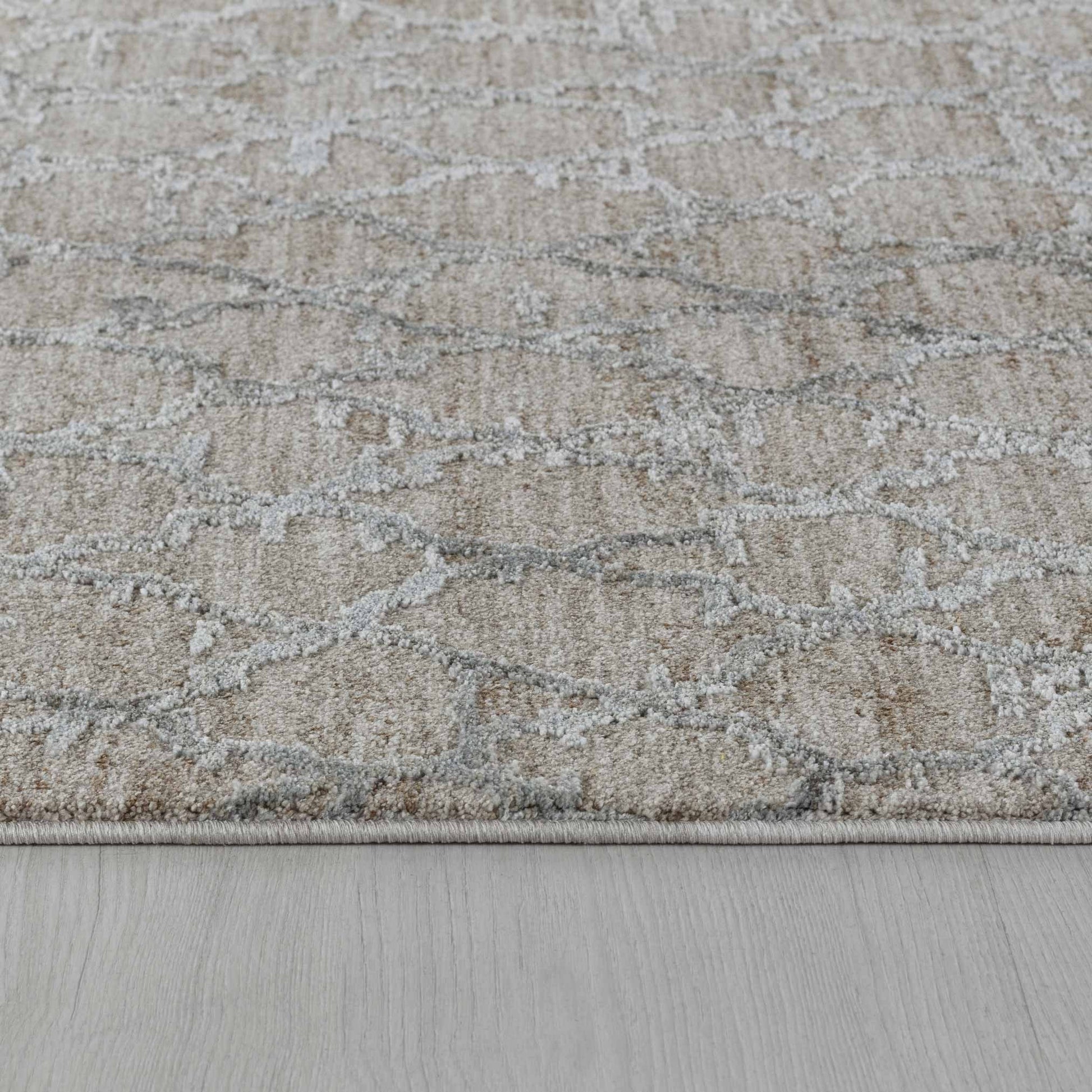 Add great coloration and comfortable texture to your space with this 5' x 8' beige moroccan stain resistant area rug. This rectangle shaped rug features a moroccan design in beige to give it visual interest. A classic shape marries with good looking design for your space The coloring of this rug adds a delightfully neutral tone to your home and will easily match with most any decor. Made in Turkey, this rug offers high quality combined with good looking designer sensibilities. Ideal for spaces with kids and pets, this rug is stain resistant to help repel stains and spilled liquids. Area Rugs help to give warmth and sense of home to your space. 0.4" H x 63" W x 91" D