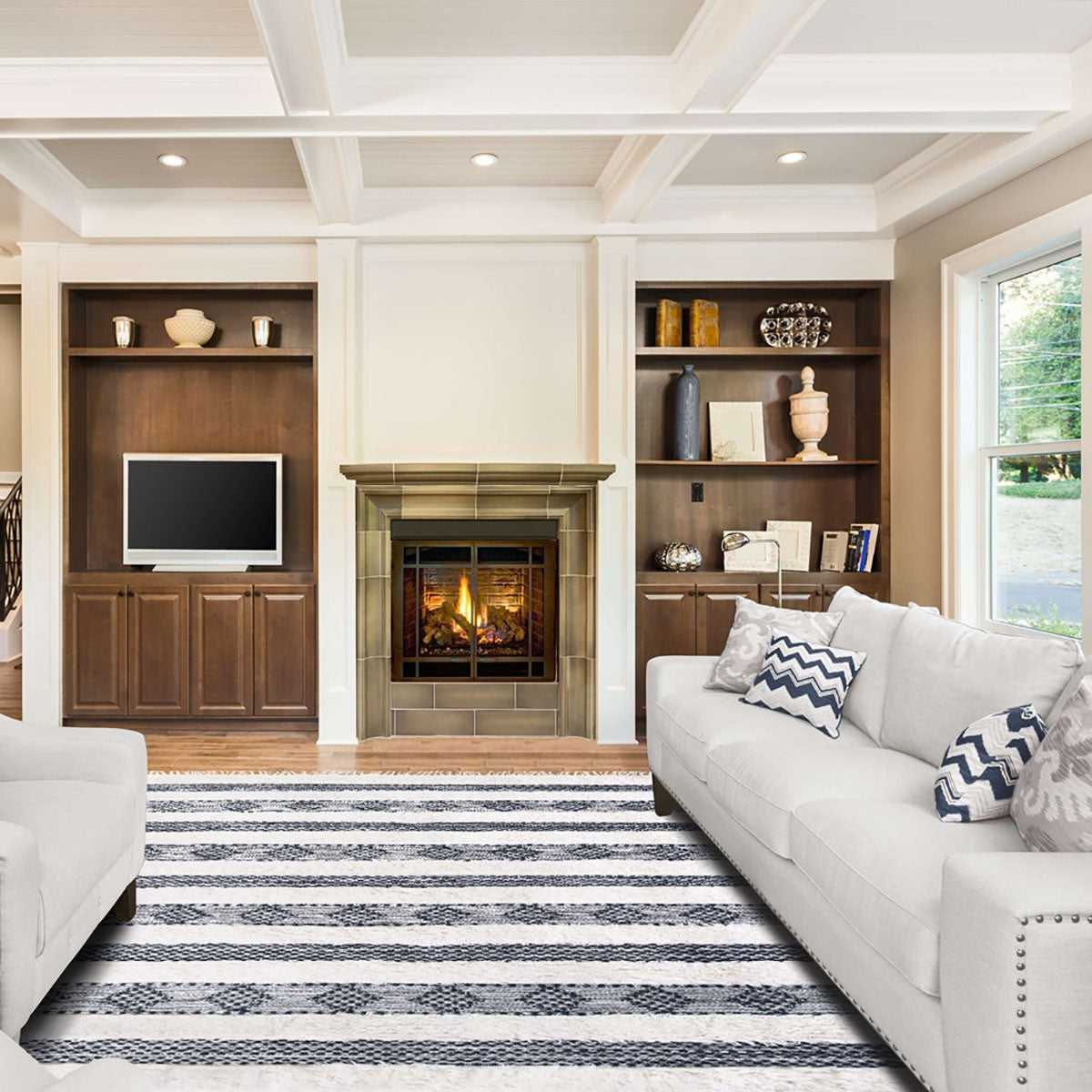 Add great coloration and comfortable texture to your space with this 5' x 8' black and ivory wool striped flatweave handmade stain resistant area rug with fringe. This rectangle shaped rug features a striped design in black and ivory to give it visual interest. A classic shape marries with good looking design for your space Made in Turkey, this rug offers high quality combined with good looking designer sensibilities. Ideal for spaces with kids and pets, this rug is stain resistant to help repel stains and spilled liquids. Tassel ends bring a timeless and fashionable look to your interior. Area Rugs help to give warmth and sense of home to your space. 1.38" H x 60" W x 96" D