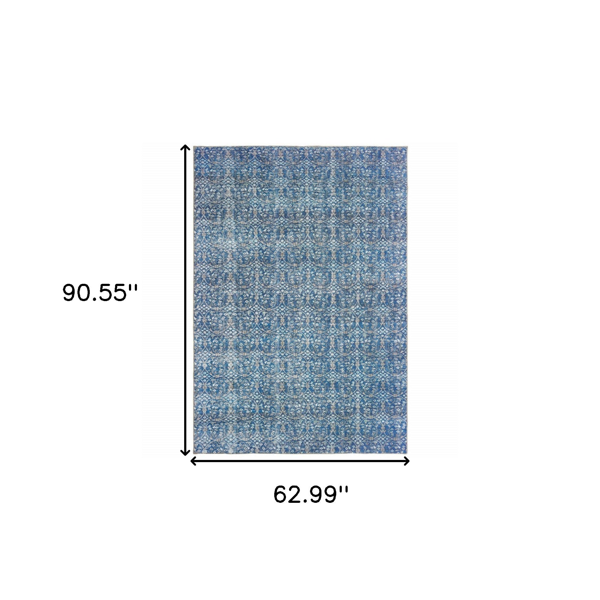 Add some artistry to your room with this 5' x 8' blue and brown floral power loom stain resistant area rug. This rectangle shaped rug features a floral design in blue and brown to give it visual interest. A classic shape marries with good looking design for your space This superior Turkish rug represents the highest quality and is built to last. Ideal for spaces with kids and pets, this rug is stain resistant to help repel stains and spilled liquids. Place this area rug against a hardwood or tile floor and it will enliven your living space with style and sophistication. 0.07" H x 62.99" W x 90.55" D