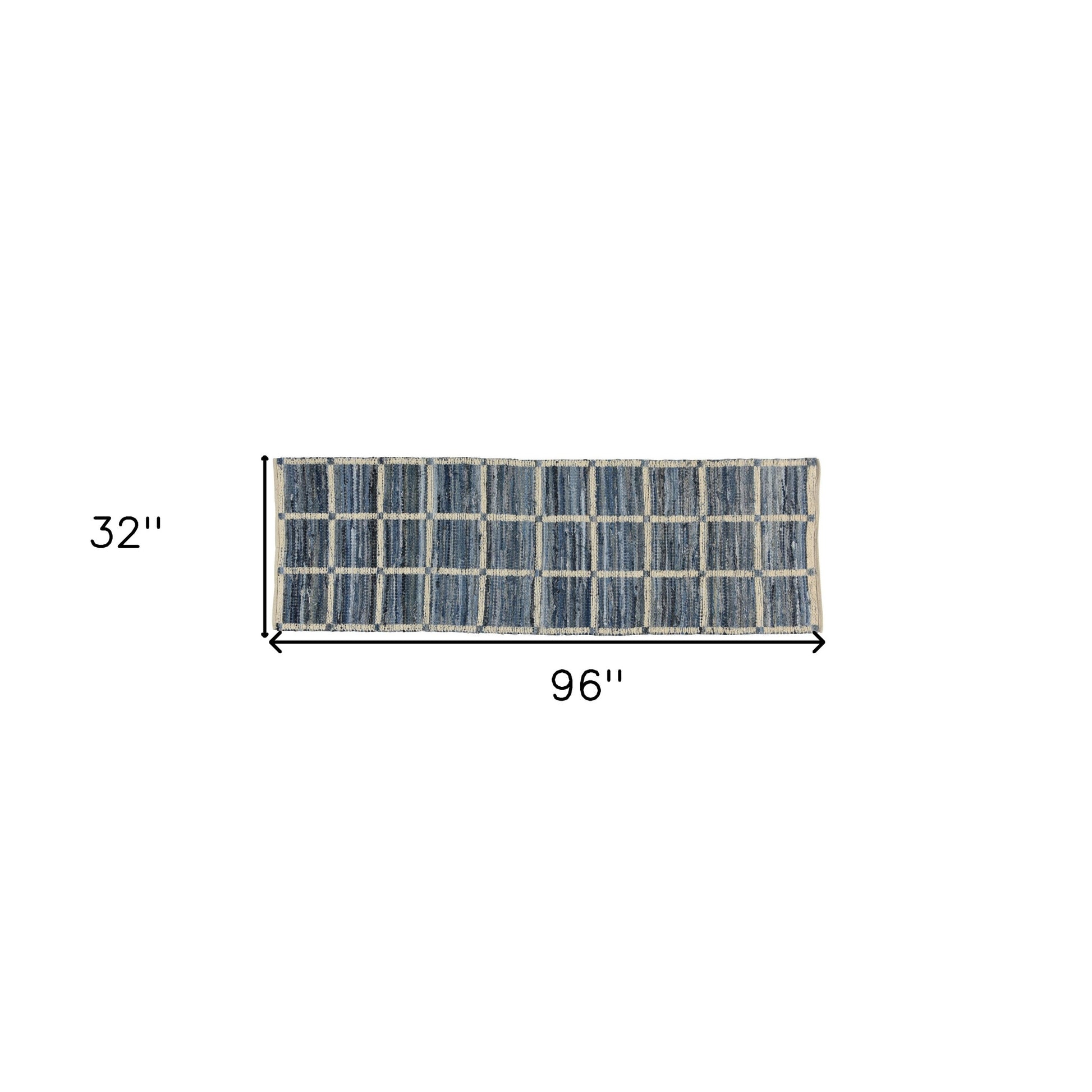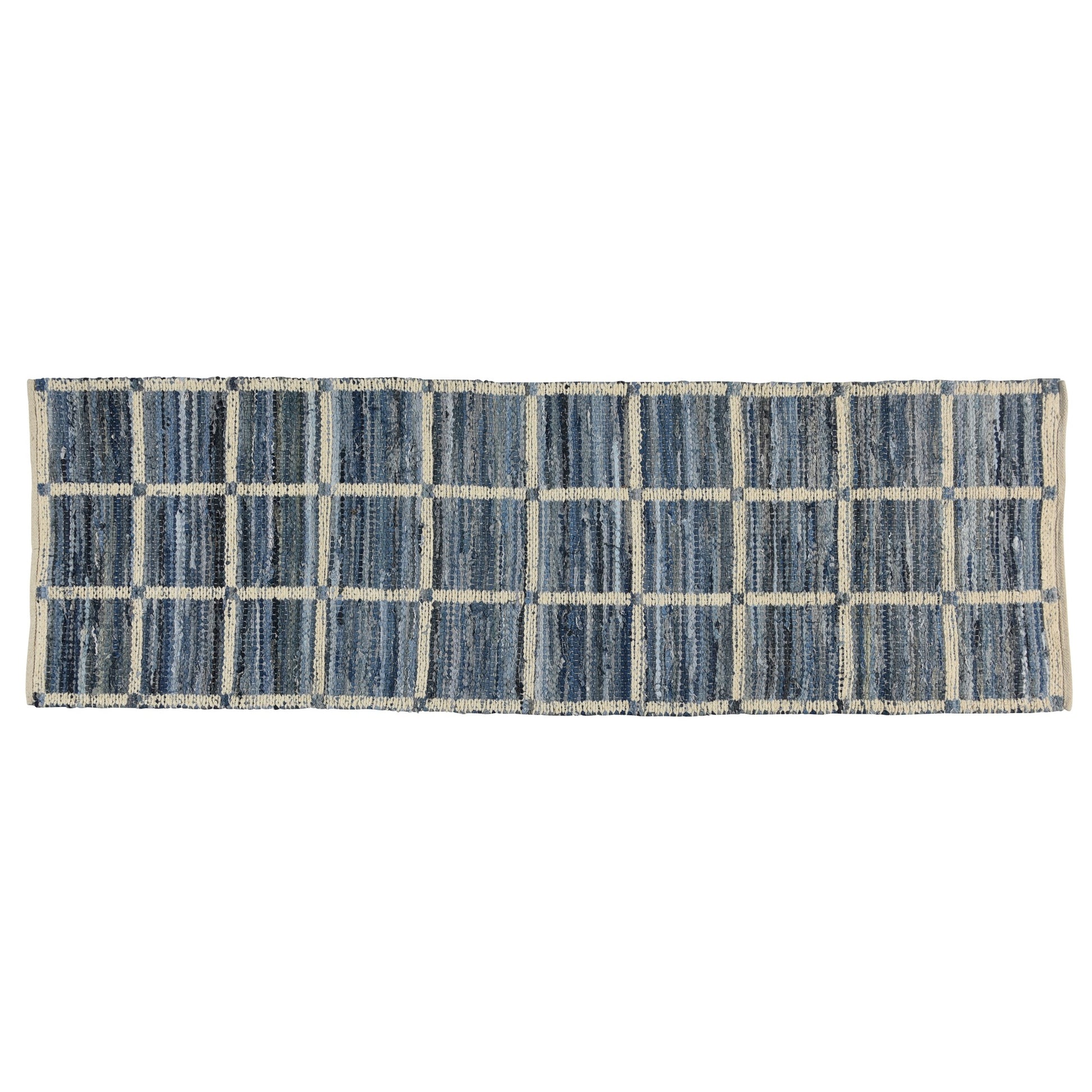 Decorate your interior with a minimalist approach by rolling this sophisticated Blue and Gray Grid Runner Rug on the floor. Upholding the essense of modern styling, this rug stands out with its dove gray grids over a distressed fusion of blue hues to tie a room together with its visual intrigue. Carefully crafted with selvedged denim and soft chenille fabric to serve you long while retaining its beauty. Not to mention the deep pile construction contributes to its soft and luxurious surface texture, making it an ideal piece for indoor areas with low foot traffic. Elegance and simplicity wrapped in a compact design, this runner rug will be a great accent to spruce up your living space and gain some style points. 0.5” x 96” x 32”