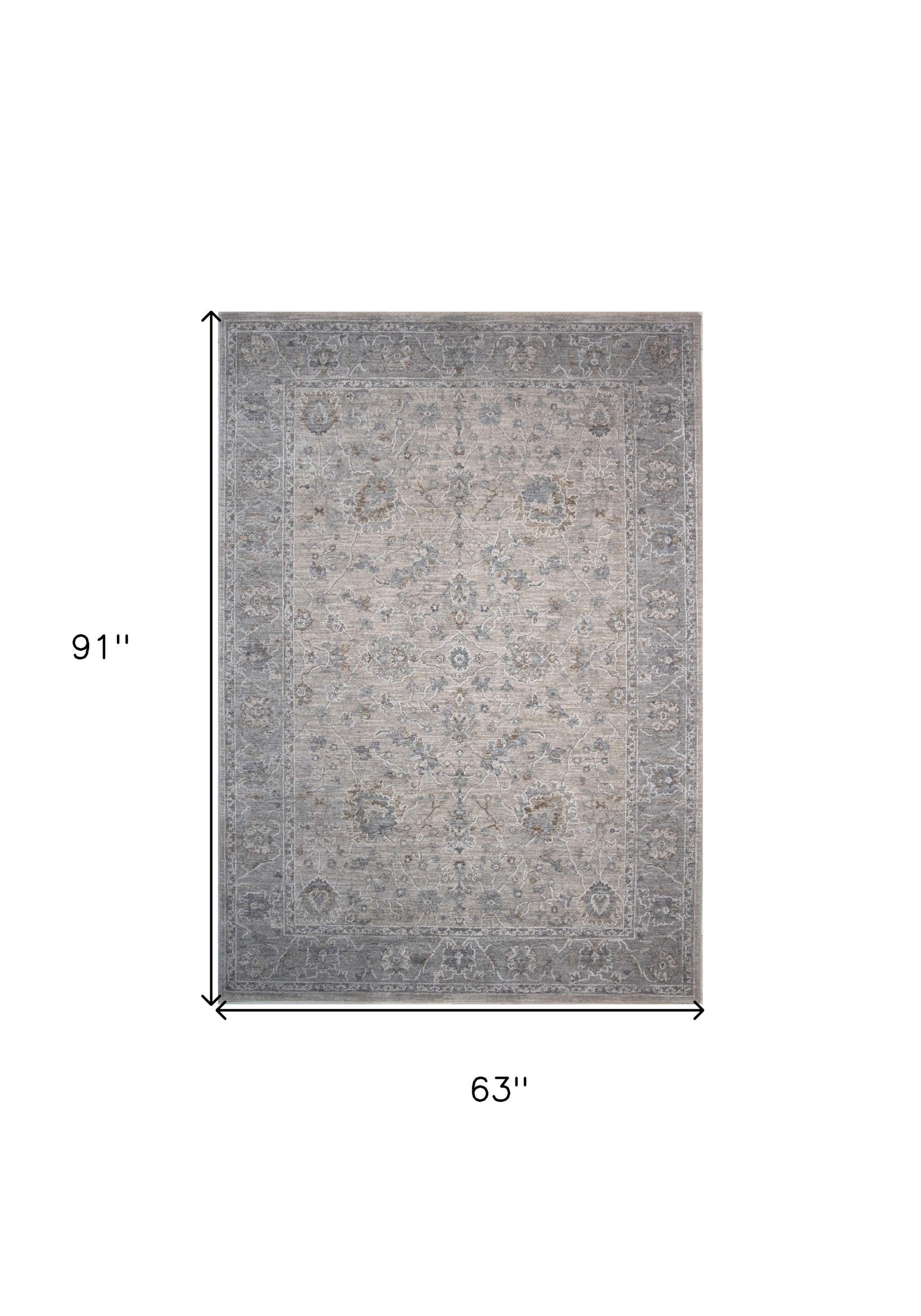 5' X 8' Cream Southwestern Power Loom Stain Resistant Area Rug