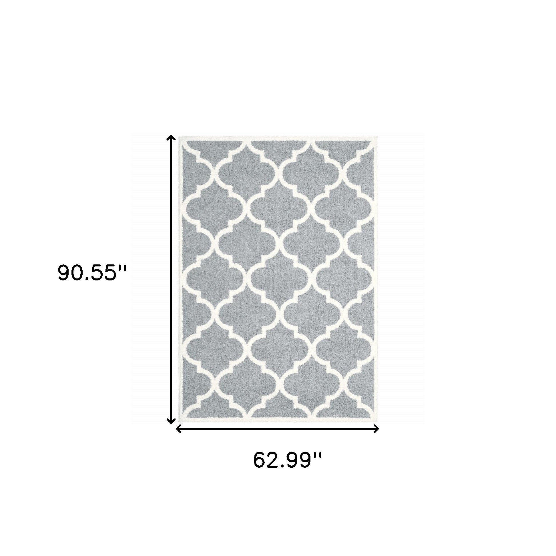 5' X 8' Grey And Ivory Geometric Shag Power Loom Stain Resistant Area Rug
