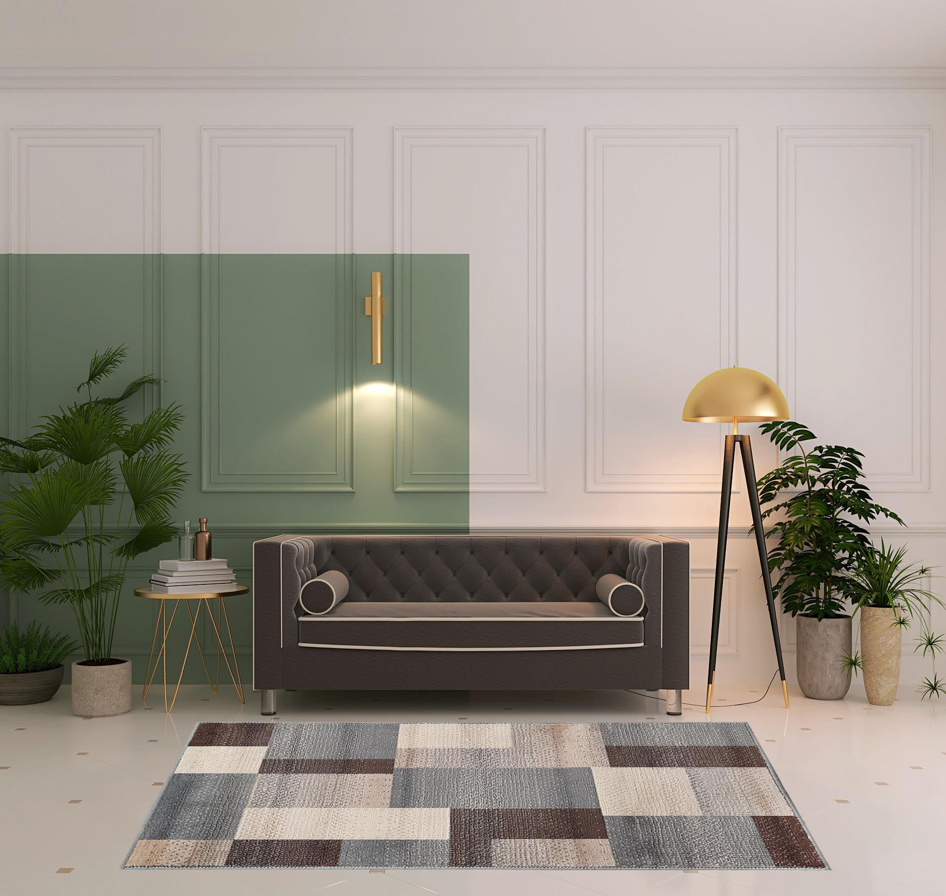 This 5' x 8' grey patchwork power loom stain resistant area rug, is a great way to add warmth to a room. This rectangle shaped rug features a patchwork design in grey to give it visual interest. A classic shape marries with good looking design for your space Ideal for spaces with kids and pets, this rug is stain resistant to help repel stains and spilled liquids. Area Rugs help to give warmth and sense of home to your space. 0.31" H x 60" W x 96" D