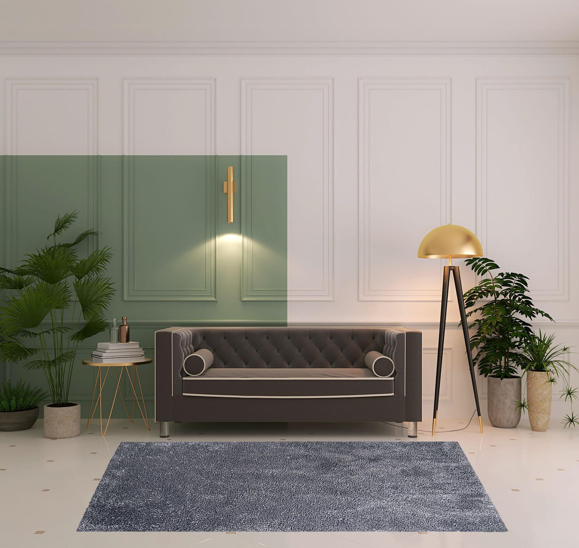 Set an inviting tone in your space with this 5' x 8' grey shag stain resistant area rug. This rectangle shaped rug flaunts a grey color that will be a great way to accent your space. Solid colors are versatile and will blend with any existing decor style. Ideal for spaces with kids and pets, this rug is stain resistant to help repel stains and spilled liquids. The retro shag construction of this luxurious rug will provide a soft and comfortable barrier to color tile and hardwood floors. Area Rugs help to give warmth and sense of home to your space. 1.69" H x 60" W x 96" D