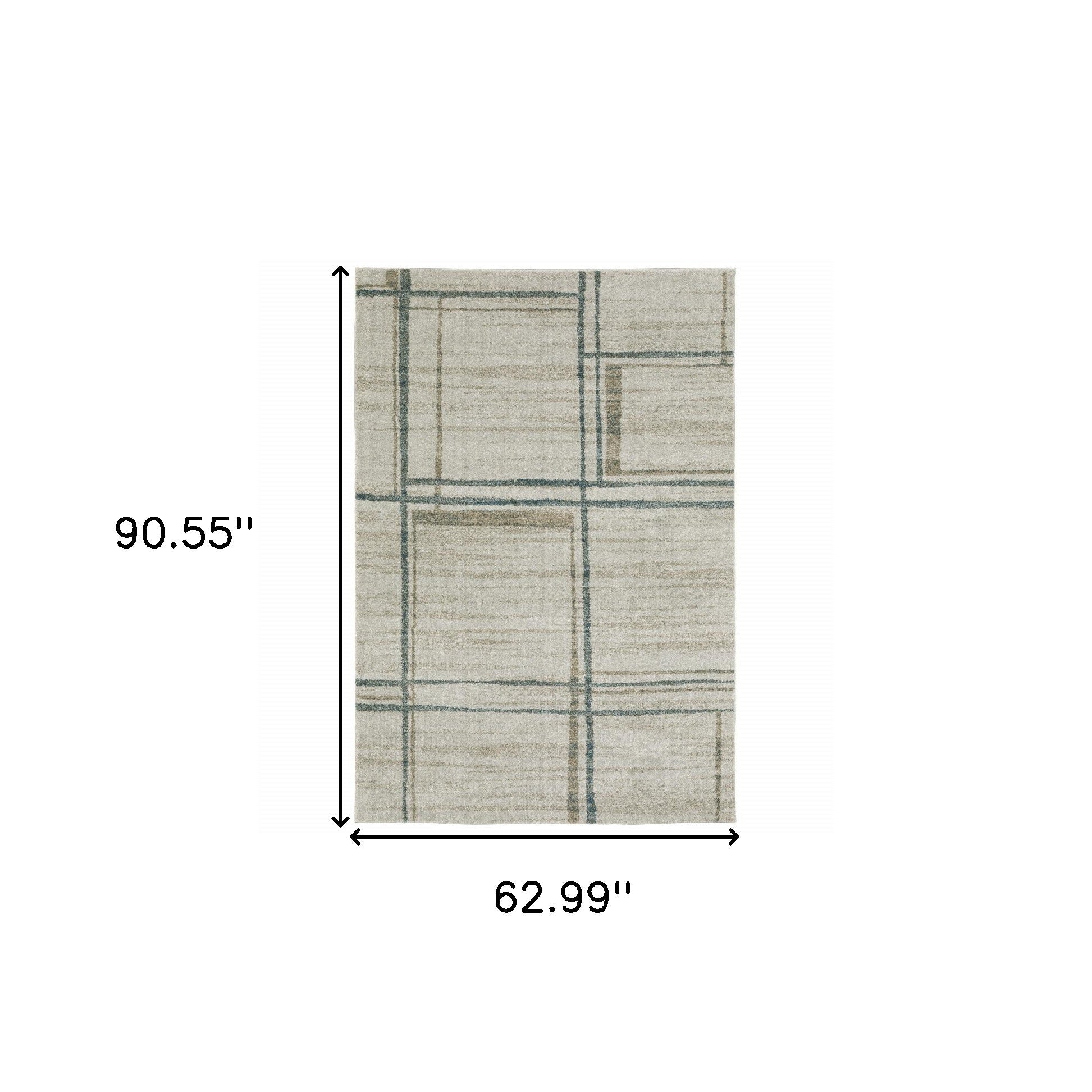 5' X 8' Grey Teal Beige And Tan Geometric Power Loom Area Rug