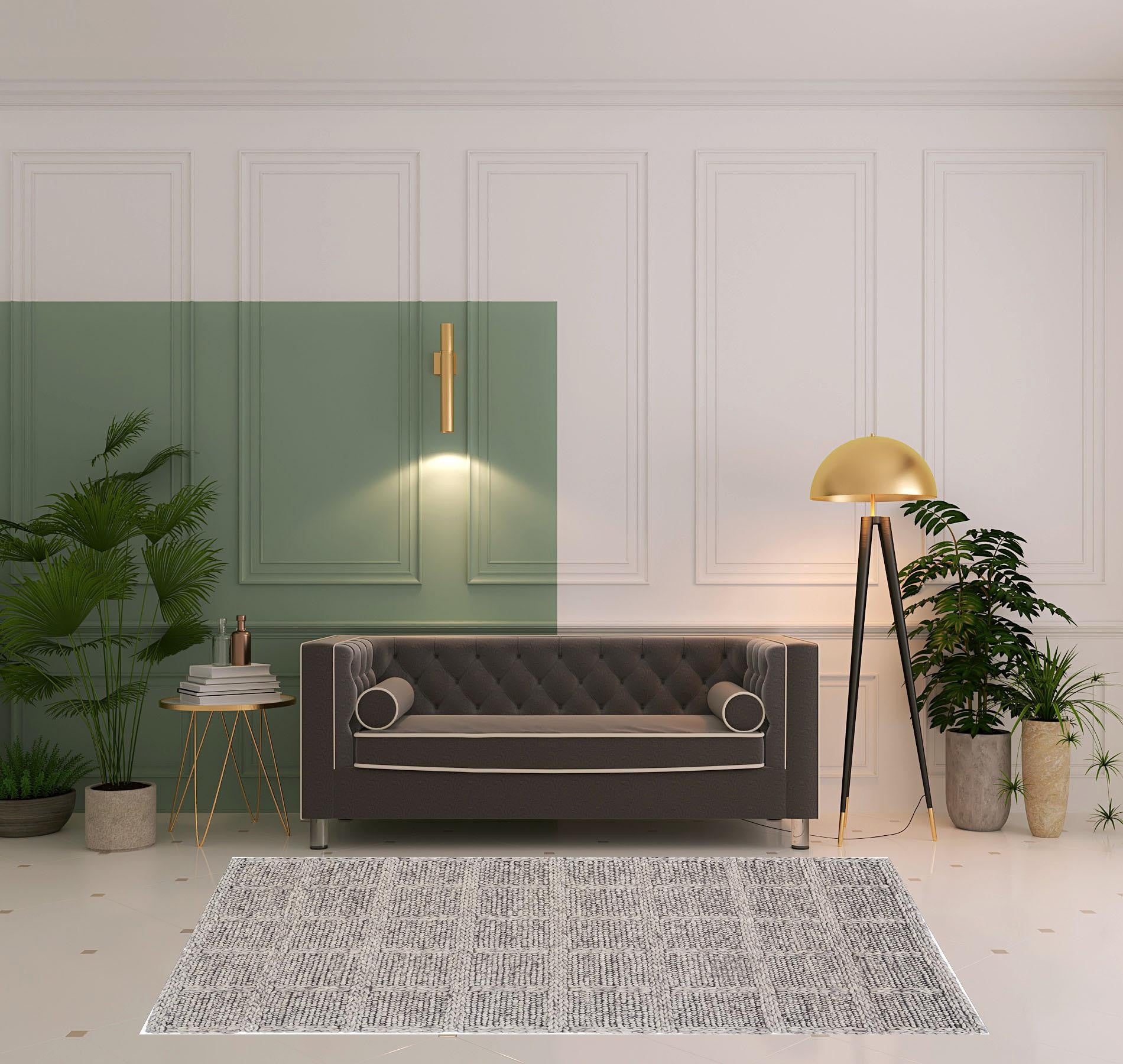 Add some artistry to your room with this 5' x 8' ivory and gray wool plaid hand woven stain resistant area rug. This rectangle shaped rug features a plaid design in ivory and gray to give it visual interest. A classic shape marries with good looking design for your space Ideal for spaces with kids and pets, this rug is stain resistant to help repel stains and spilled liquids. Crafted by skilled artisans, this hand woven rug is genuine and unique. No two will be exactly alike. Place this area rug against a hardwood or tile floor and it will enliven your living space with style and sophistication. 0.68" H x 60" W x 96" D
