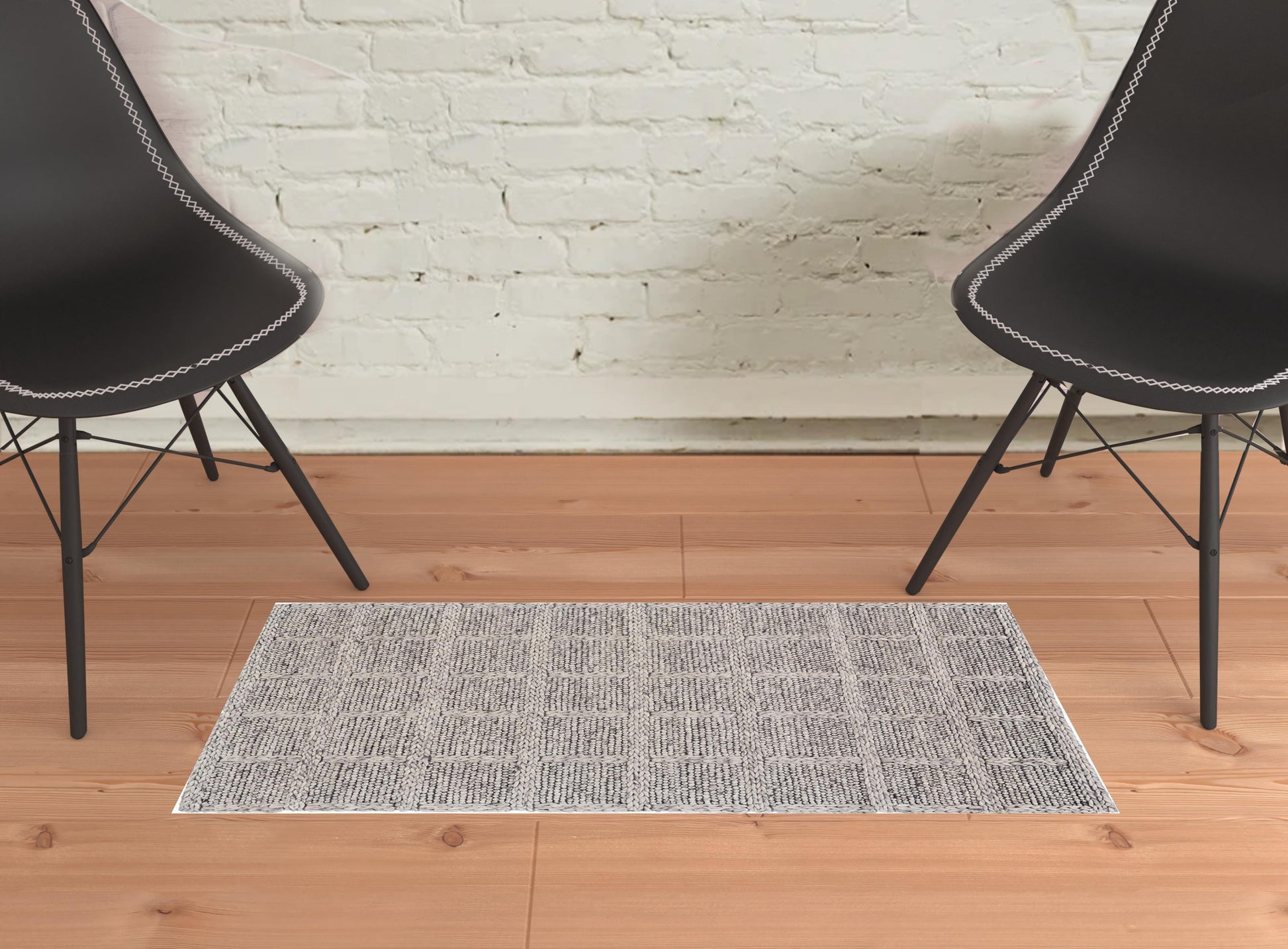 5' X 8' Ivory And Gray Wool Plaid Hand Woven Stain Resistant Area Rug