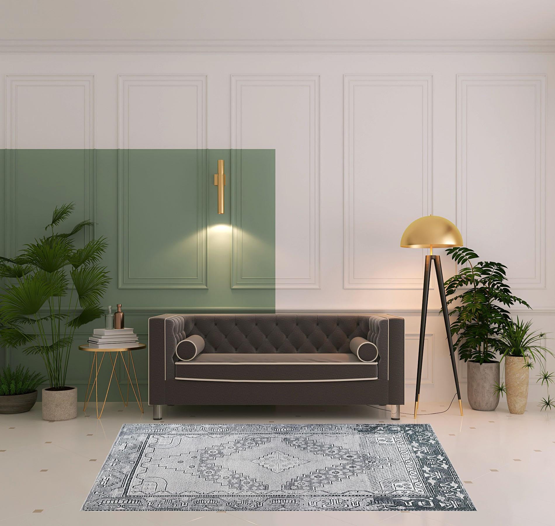 Add great coloration and comfortable texture to your space with this 5' x 8' light gray geometric power loom distressed stain resistant non skid area rug. This rectangle shaped rug features a geometric design in light gray to give it visual interest. A classic shape marries with good looking design for your space The coloring of this rug adds a delightfully neutral tone to your home and will easily match with most any decor. This superior Turkish rug represents the highest quality and is built to last. Ideal for spaces with kids and pets, this rug is stain resistant to help repel stains and spilled liquids. Area Rugs help to give warmth and sense of home to your space. 0.08" H x 60" W x 91.2" D