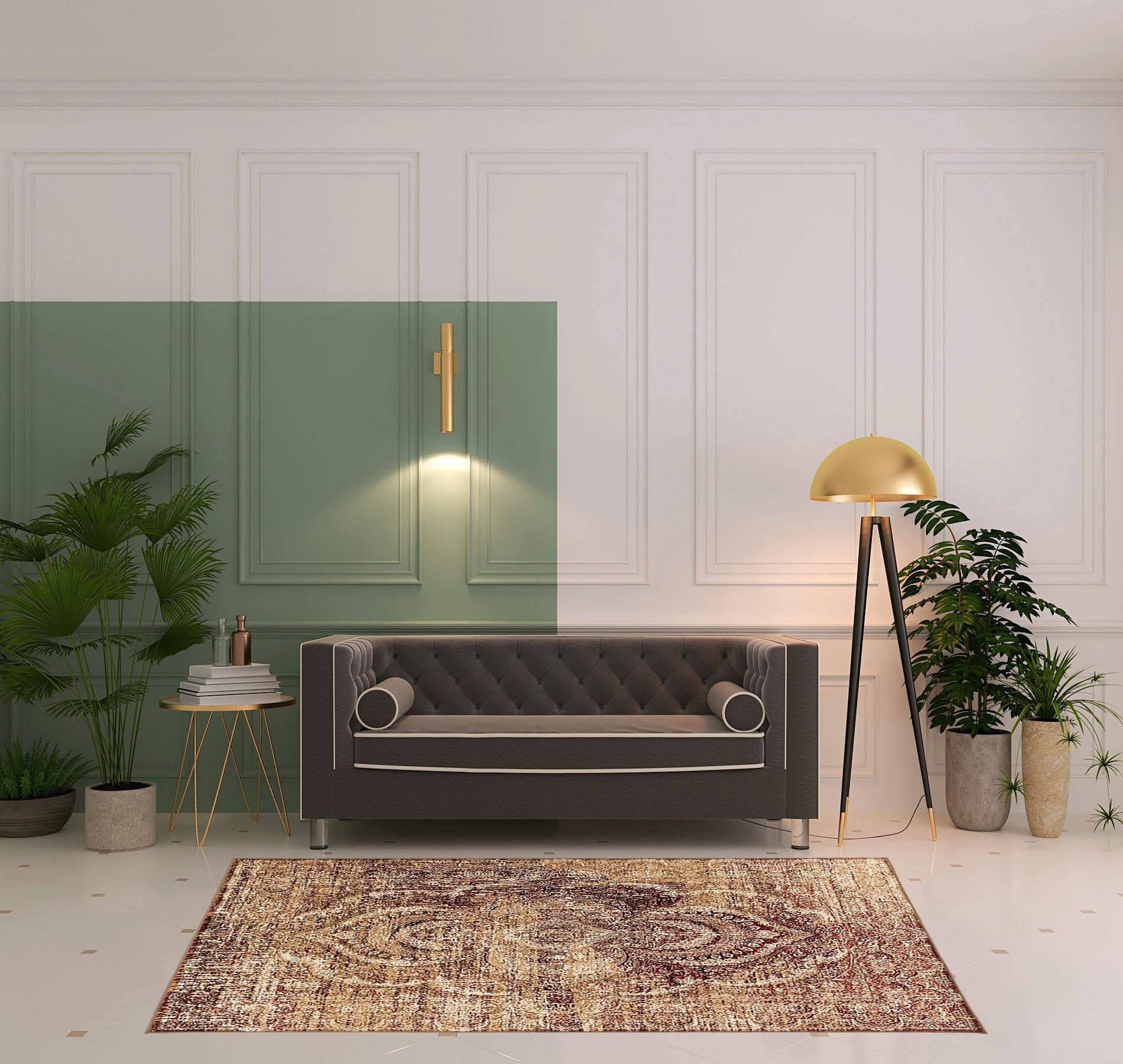 Add some artistry to your room with this 5' x 8' maroon and gold abstract power loom distressed stain resistant area rug. This rectangle shaped rug features a abstract design in maroon and gold to give it visual interest. A classic shape marries with good looking design for your space Made in Turkey, this rug offers high quality combined with good looking designer sensibilities. Ideal for spaces with kids and pets, this rug is stain resistant to help repel stains and spilled liquids. Place this area rug against a hardwood or tile floor and it will enliven your living space with style and sophistication. 0.39" H x 60" W x 96" D
