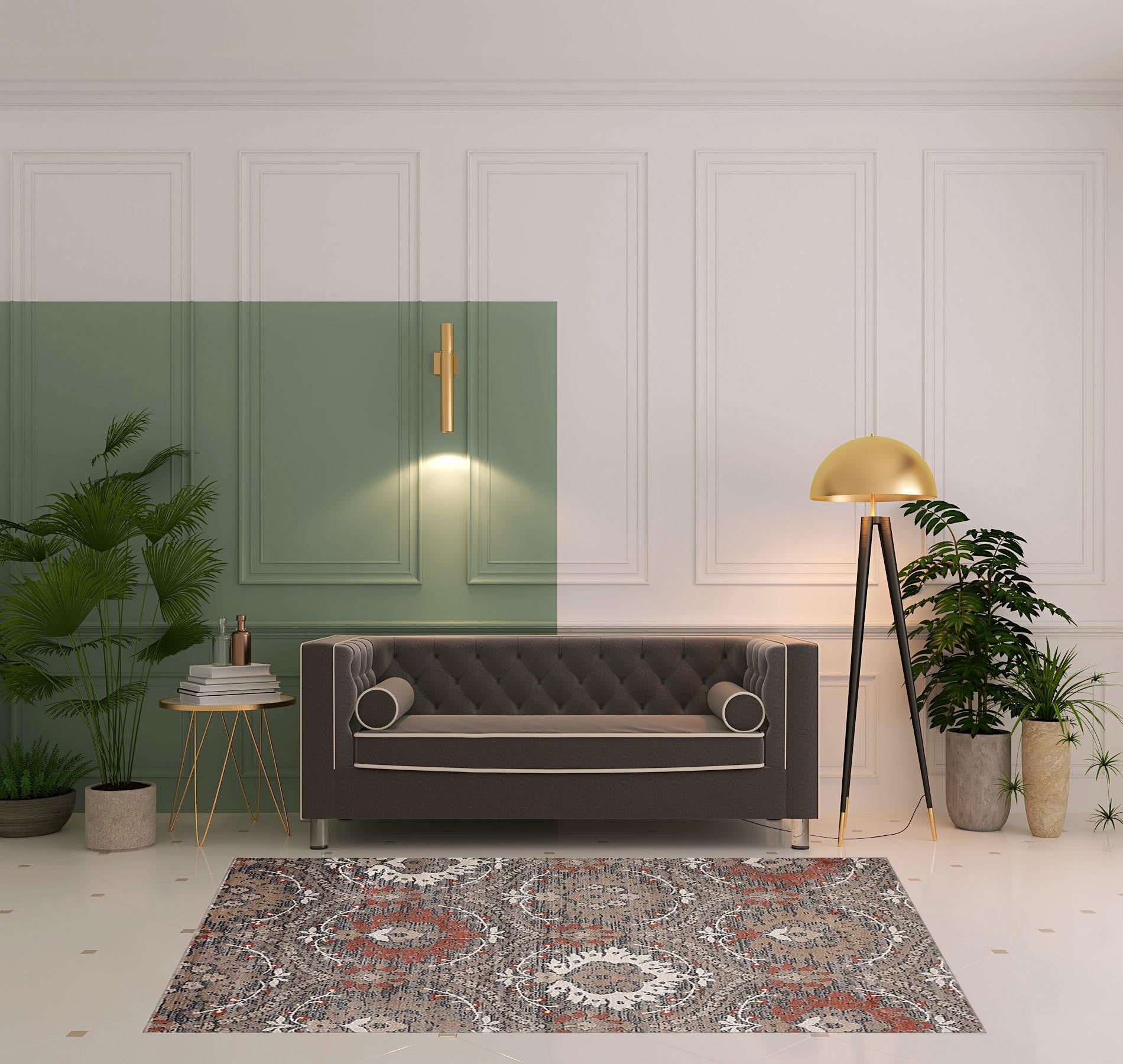 Add great coloration and comfortable texture to your space with this 5' x 8' rust floral stain resistant area rug. This rectangle shaped rug features a floral design in rust to give it visual interest. A classic shape marries with good looking design for your space Ideal for spaces with kids and pets, this rug is stain resistant to help repel stains and spilled liquids. Area Rugs help to give warmth and sense of home to your space. 0.31" H x 60" W x 96" D